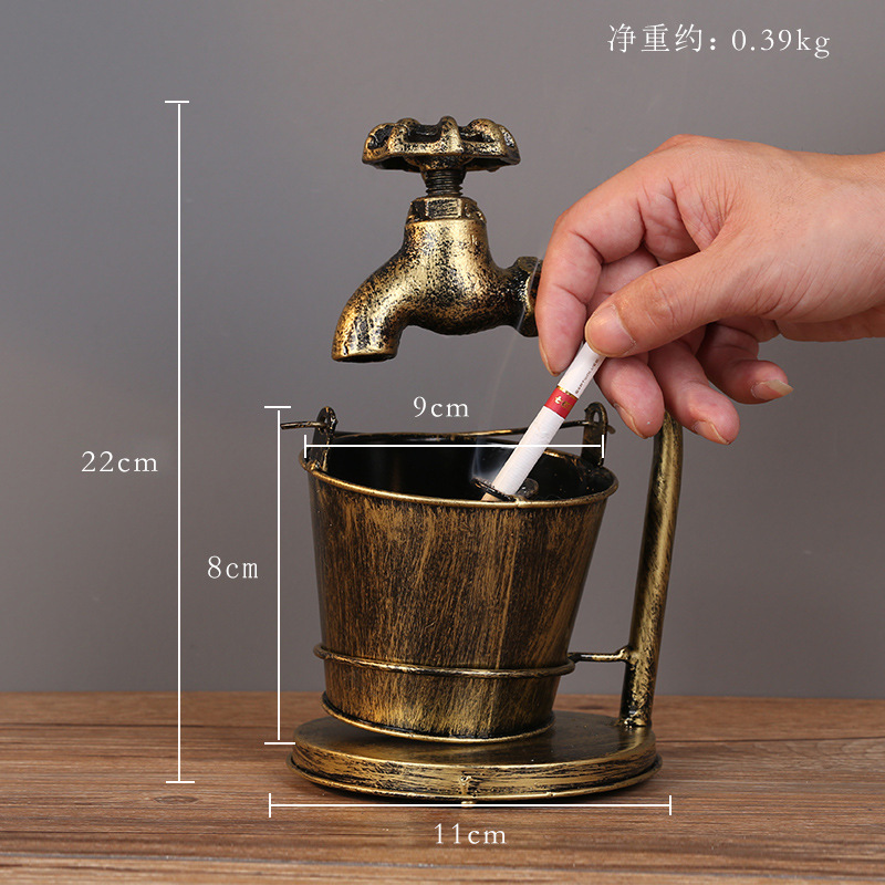 复古水龙头铁艺烟灰缸创意工艺品酒吧网咖摄影道具摆件金属工艺品