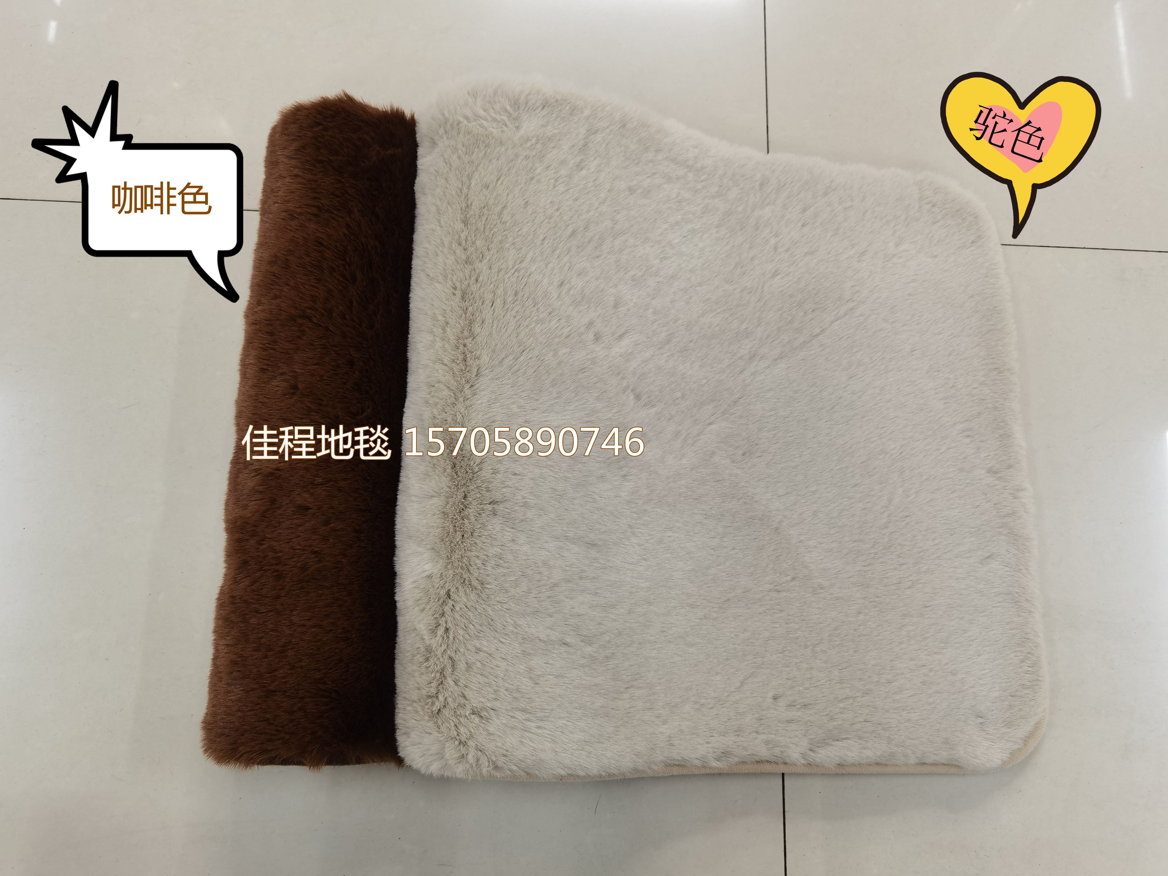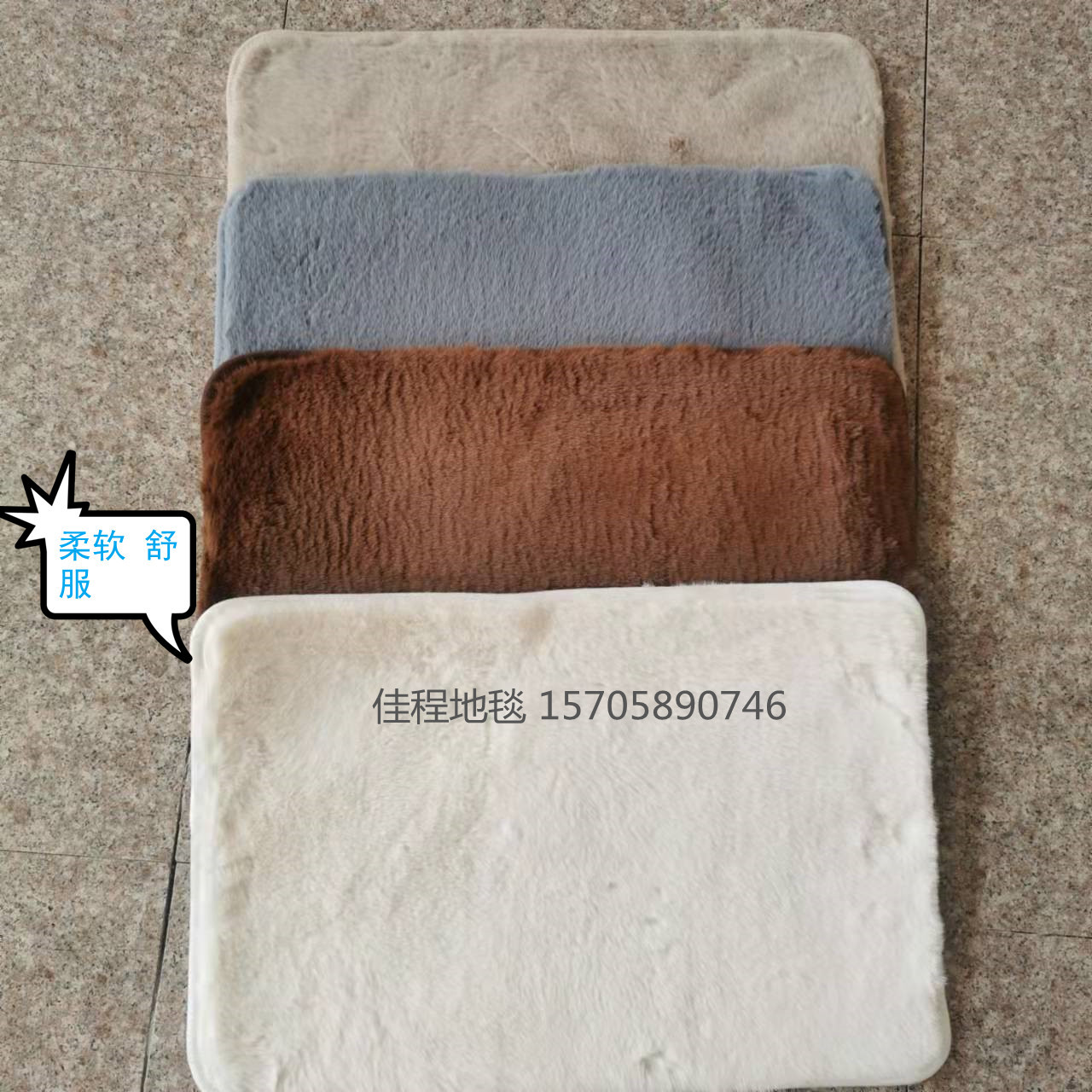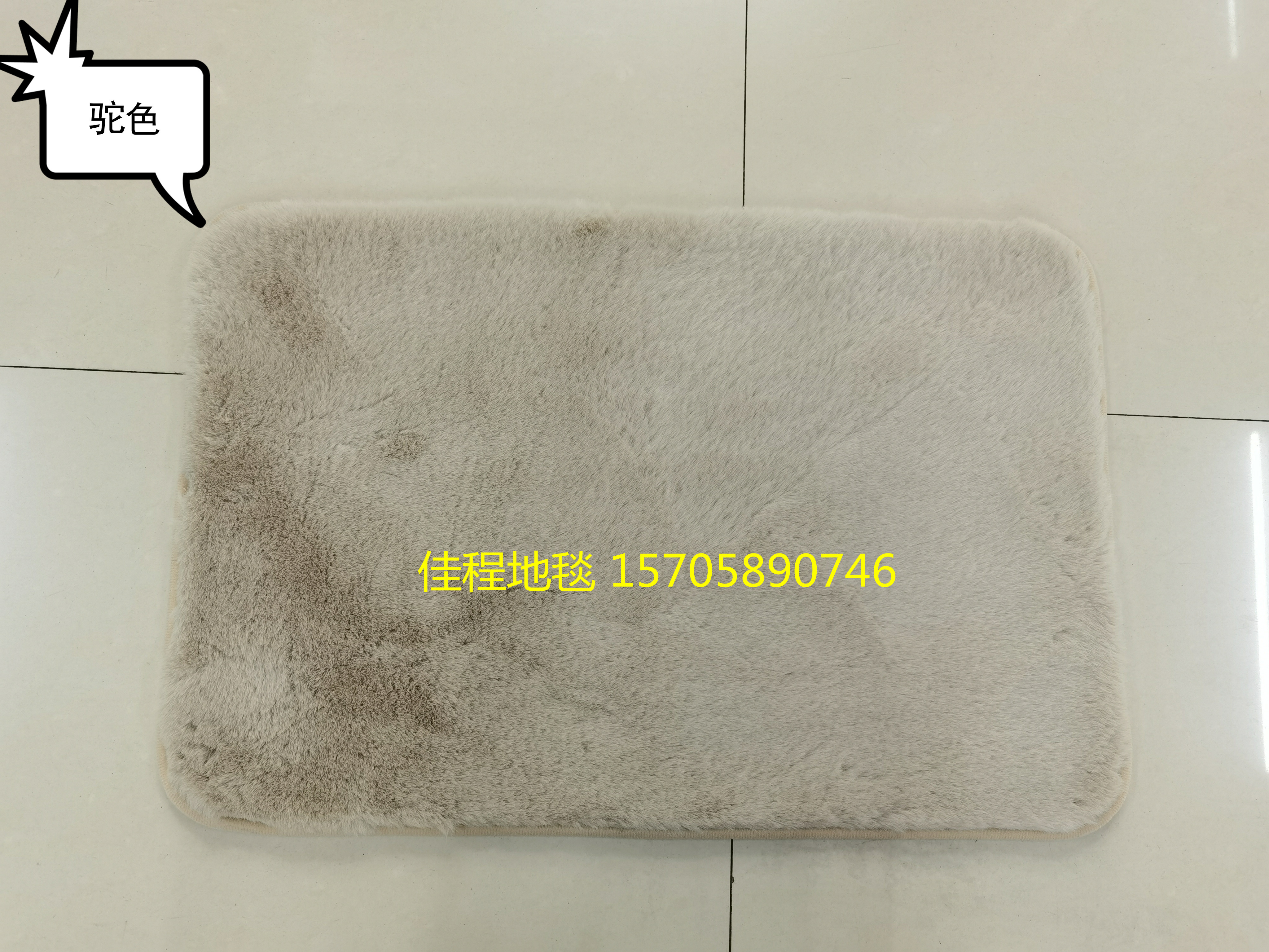 新款TPR底仿兔毛地垫地毯兔毛防滑垫床边垫客厅毯尺寸可定做地毯 面料柔软 舒服 产品质量好 底部是TPR,常规颜色可以混,米白色、 粉色、银灰、驼色、紫色、咖啡色、大红色。尺寸有40*60cm/50*80cm/....可以定做任何形状垫。。。。