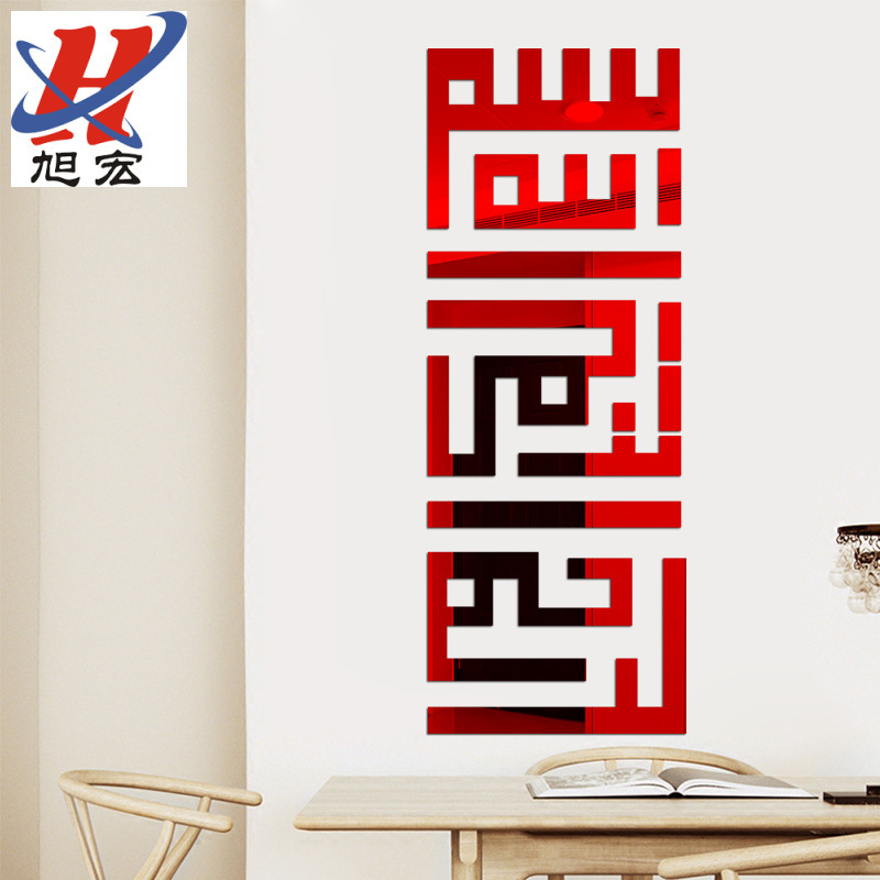 穆斯林字镜面墙贴3d立体无毒环保厂家直销带背胶自粘表面有保护膜