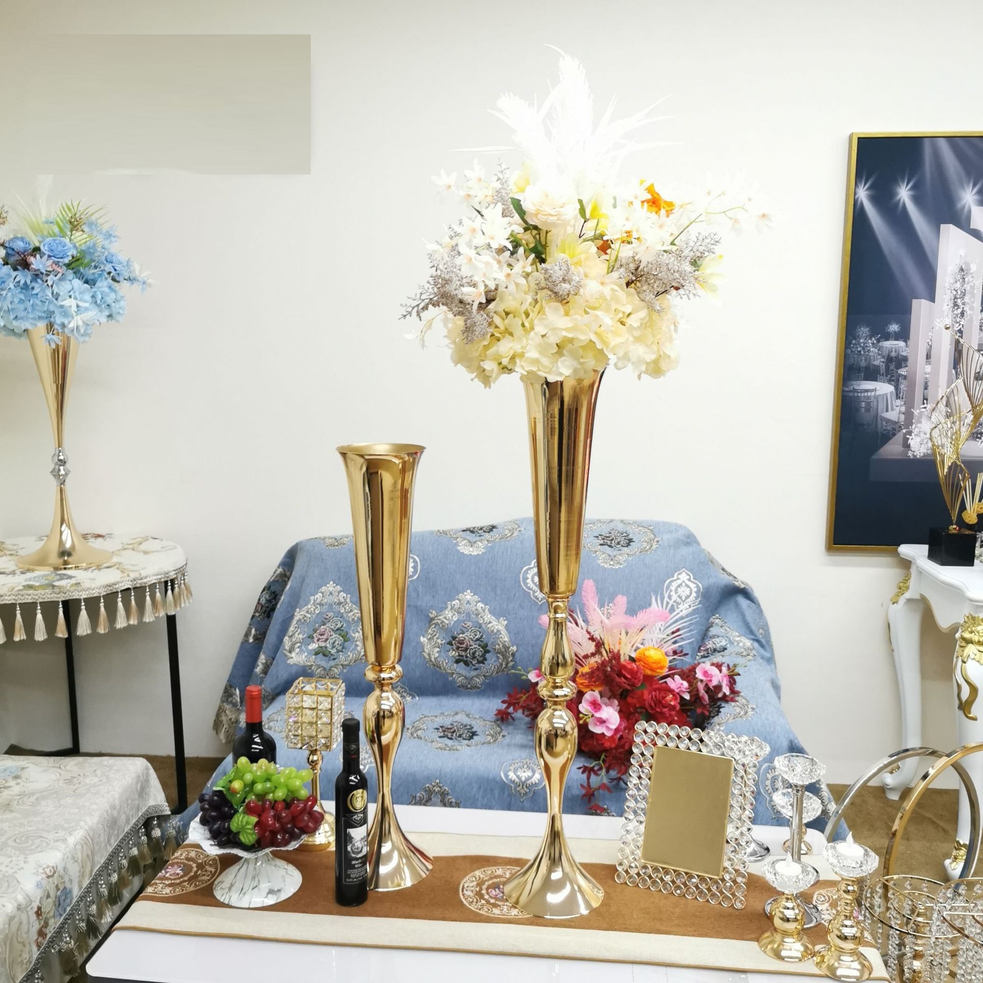 酒店装饰花瓶婚庆道具路引美人鱼铁艺花器干花花盆仿真花摆件