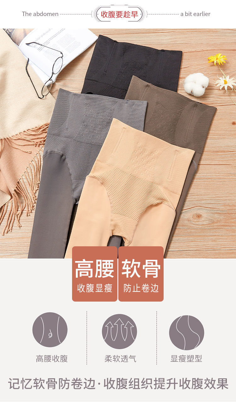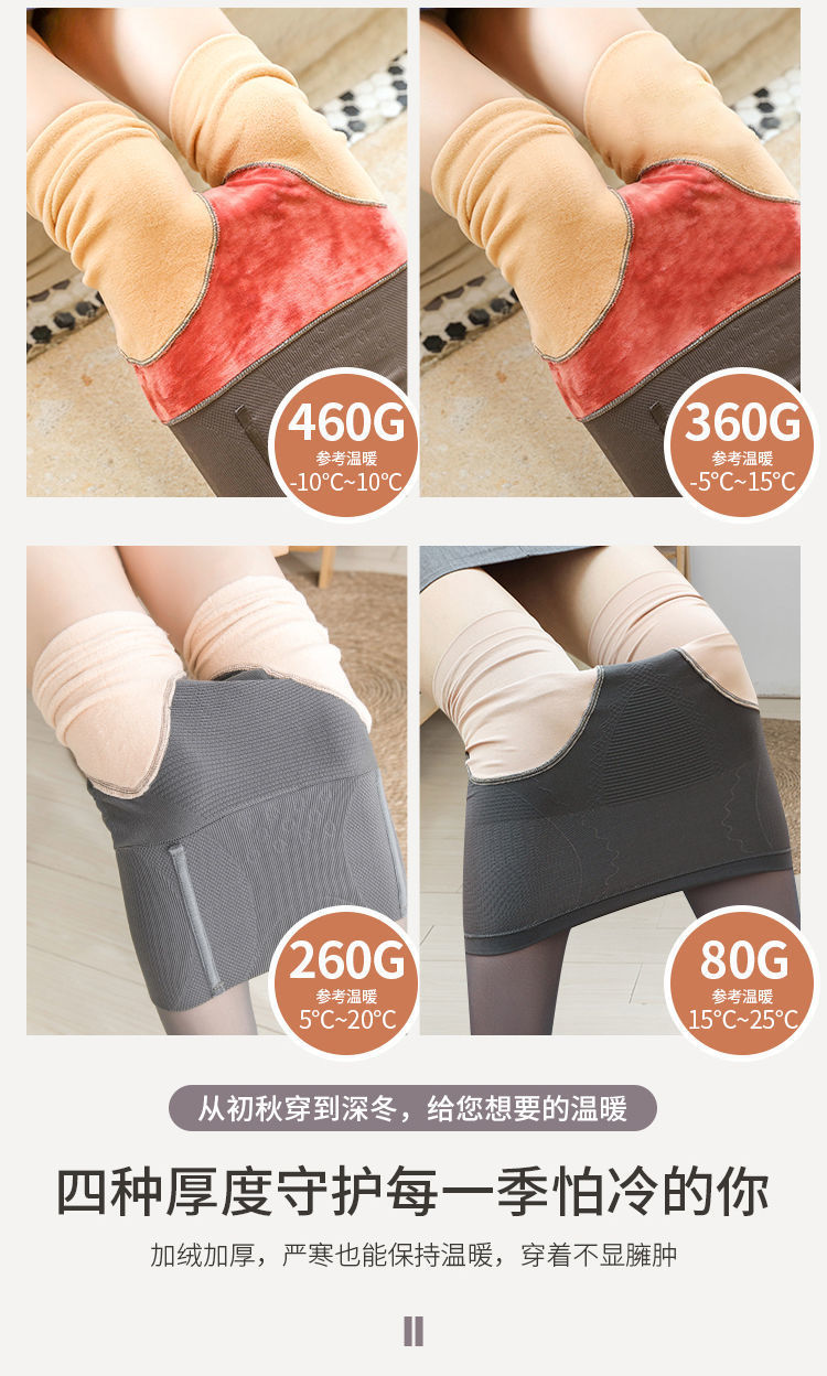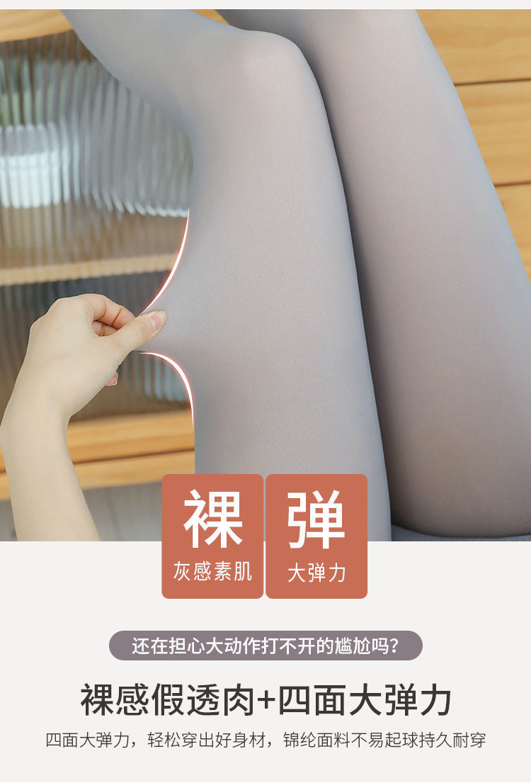 高矮个子空姐灰光腿神器透肤防勾丝加绒一体假透肉冬季加厚打底裤