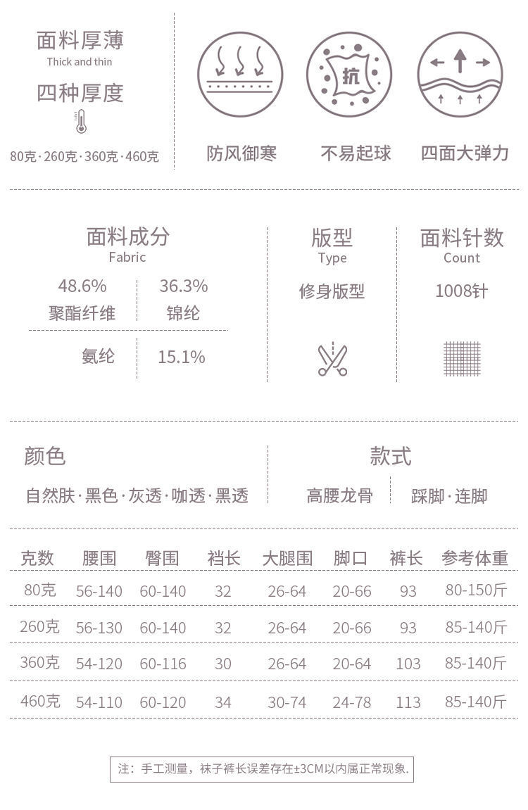 | Light Leg Skin [160G] Suitable for 10-25 Degrees: free Size-Step Foot [156-168](光腿肤【160克】适合10-25度:均码-踩脚【156-168】) | USD $4.43 | 1000 piece available |