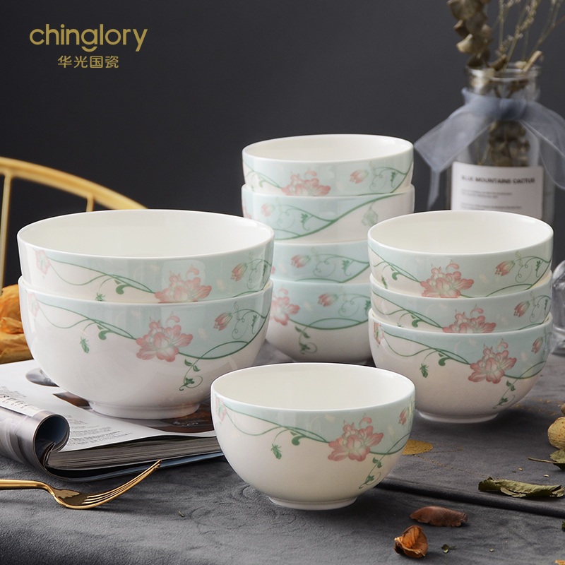 华光国瓷骨瓷餐具8只米饭碗2只面碗10碗套装 家用饭碗面碗 釉中彩