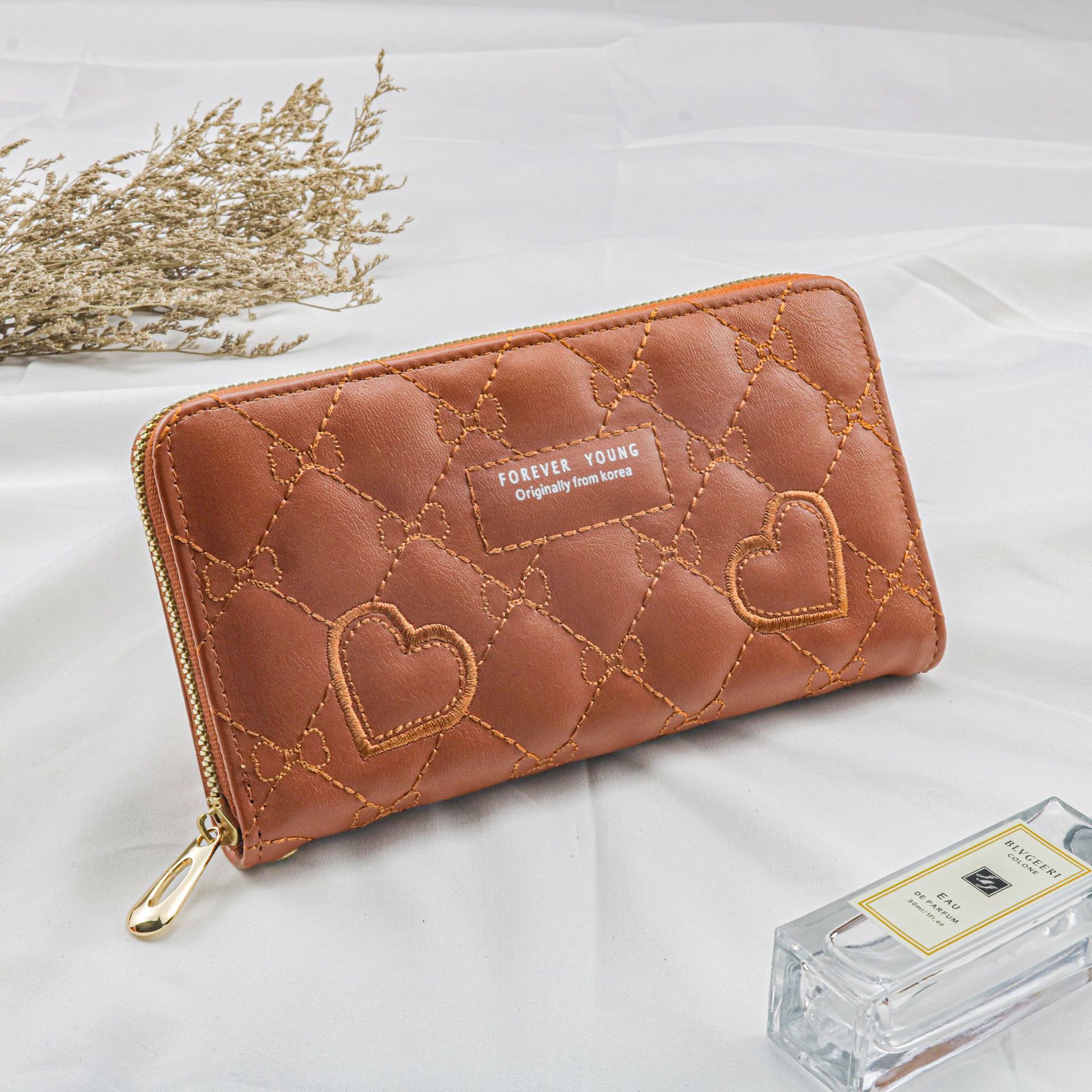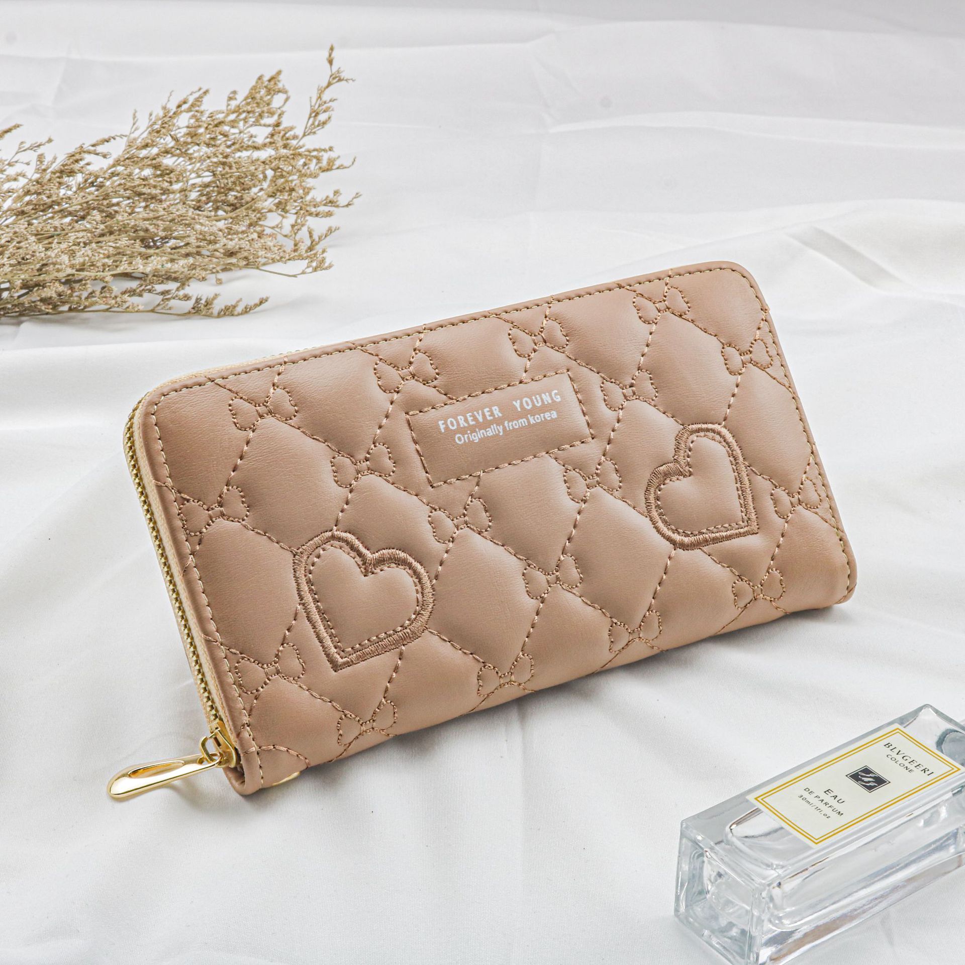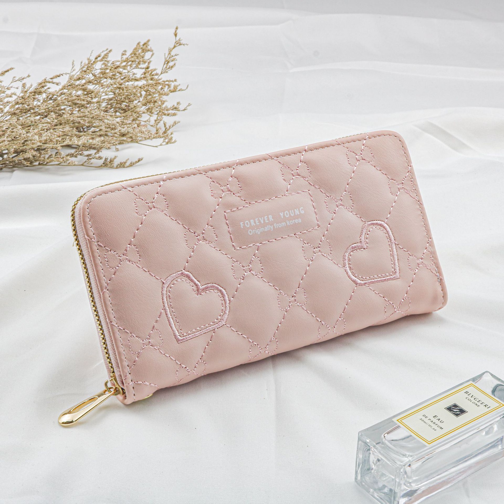 Stock zipper bag绣花女士手拿单拉钱包心形零钱包多卡位成人钱包