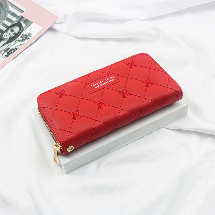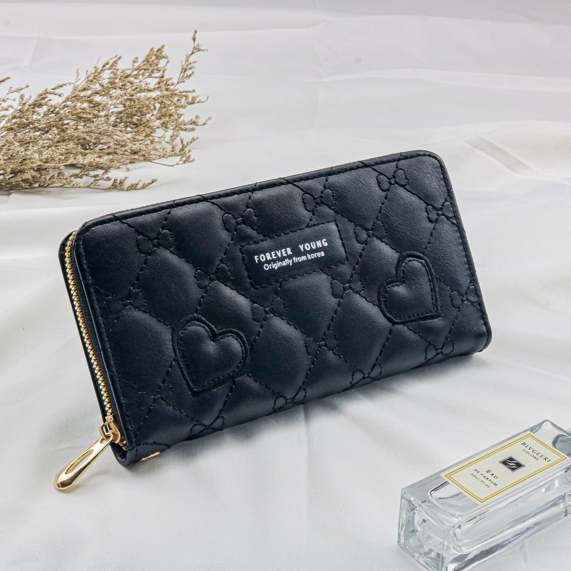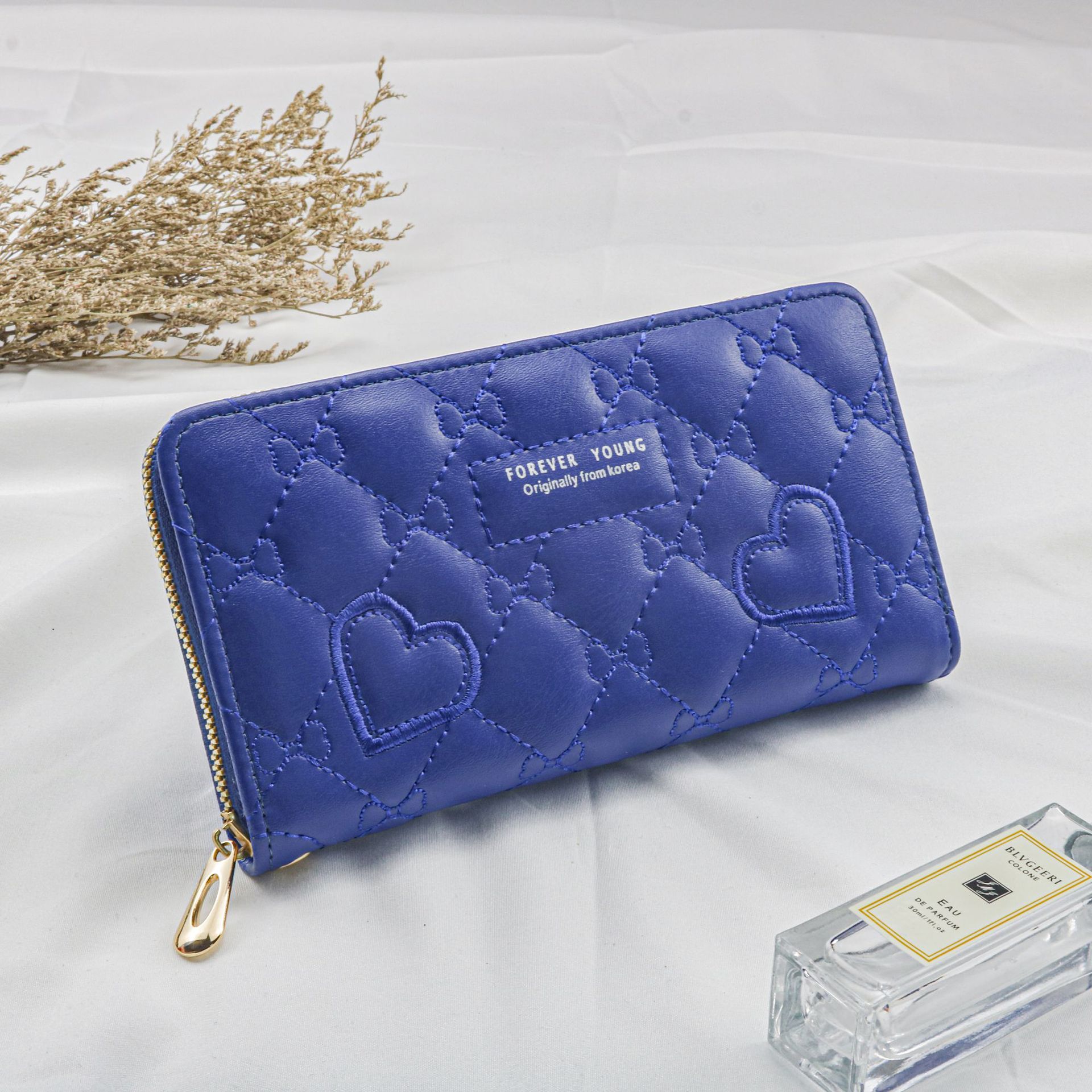 Stock zipper bag绣花女士手拿单拉钱包心形零钱包多卡位成人钱包