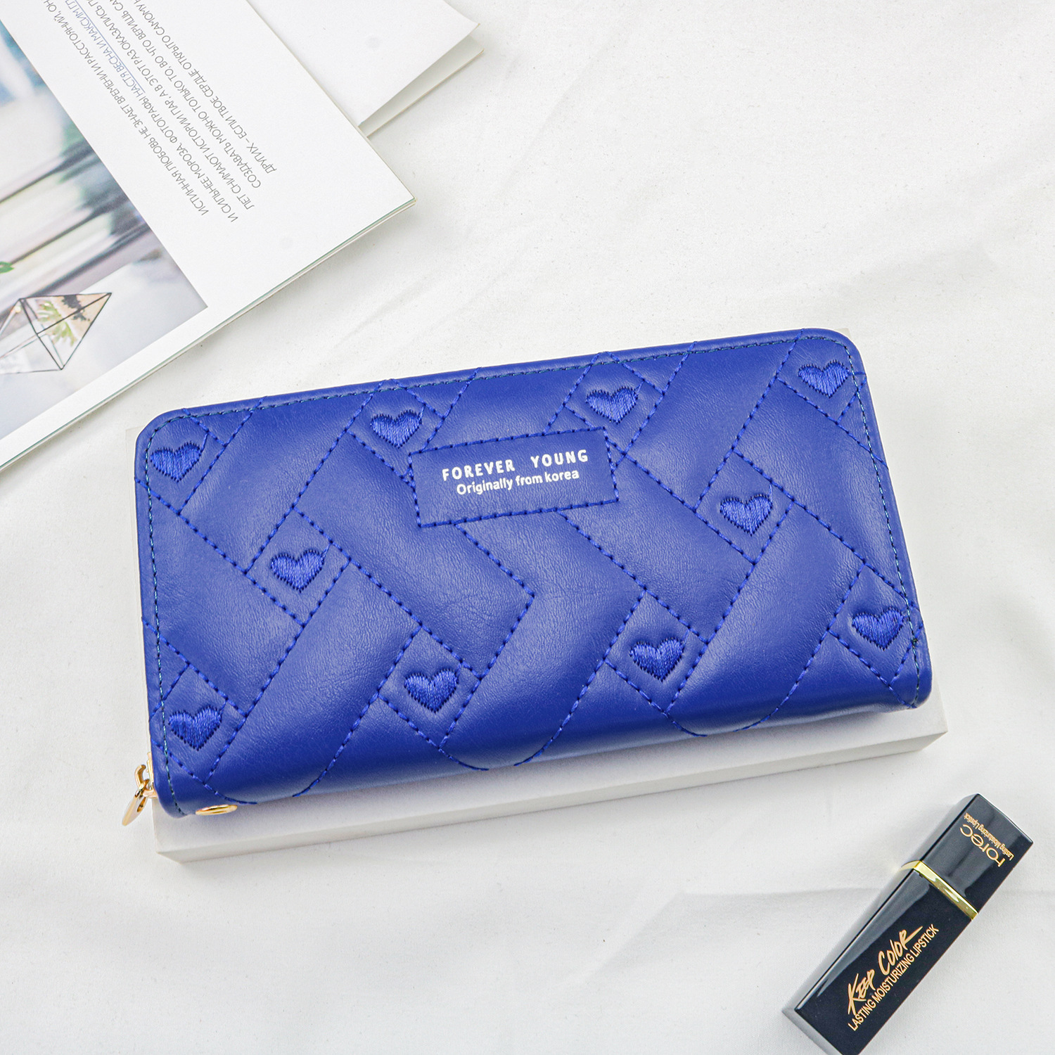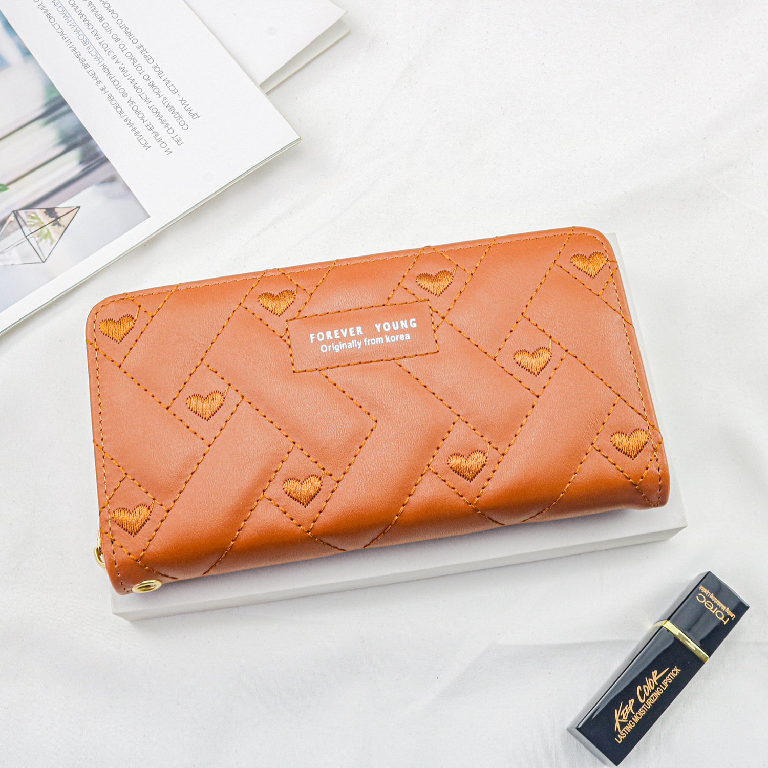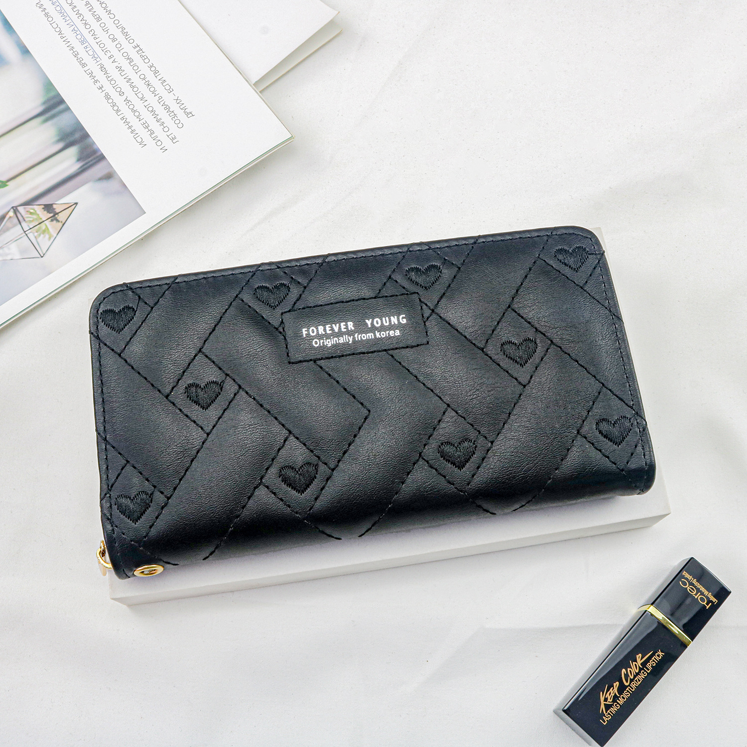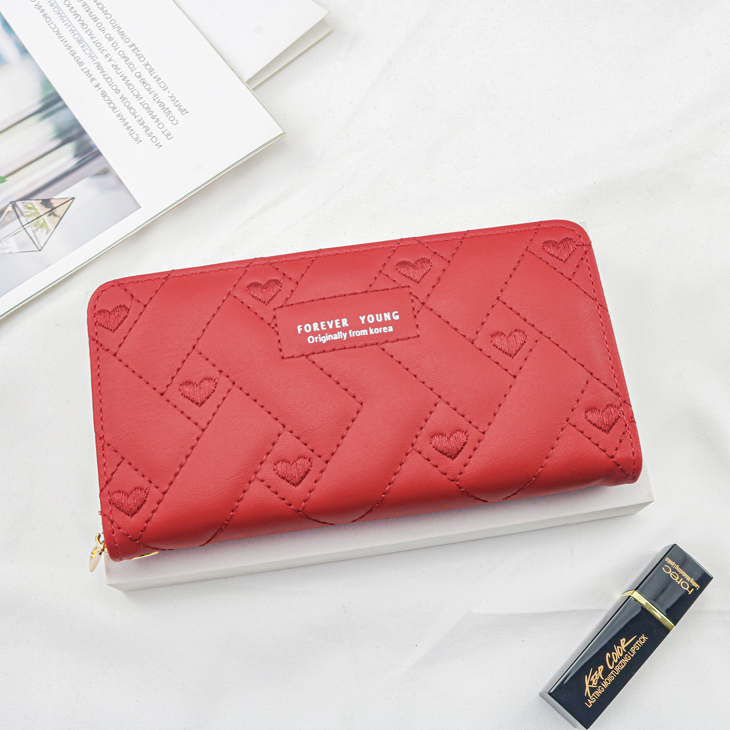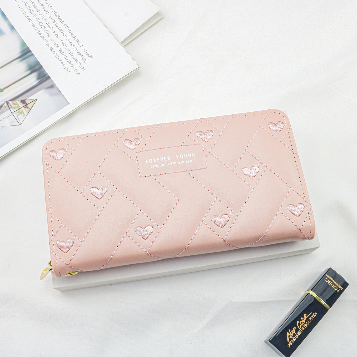 Stock zipper bag女绣花简约学生心形绣线零钱包长款大容量手拿包