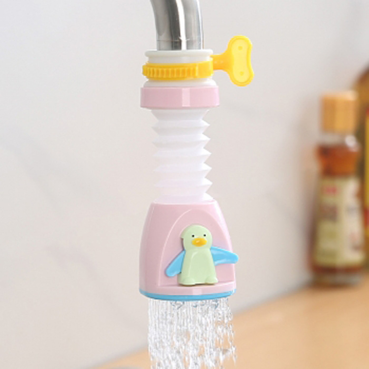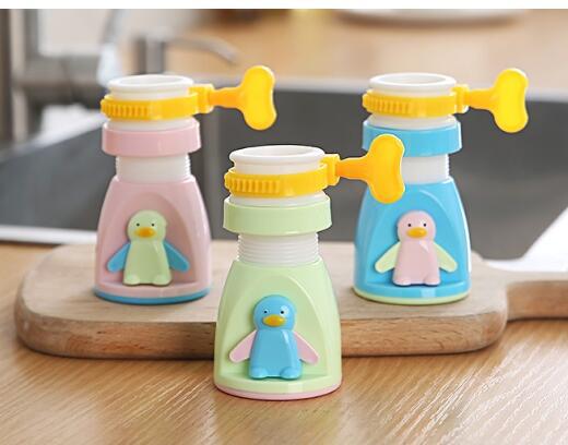 新款卡通水龙头花洒卡扣设计可旋转伸缩过滤器企鹅自来水防溅喷头
