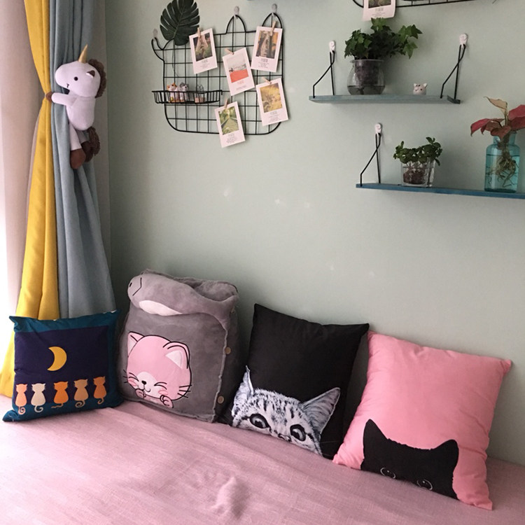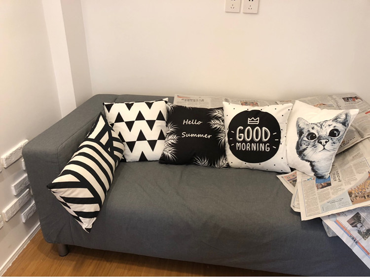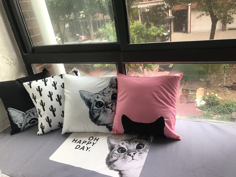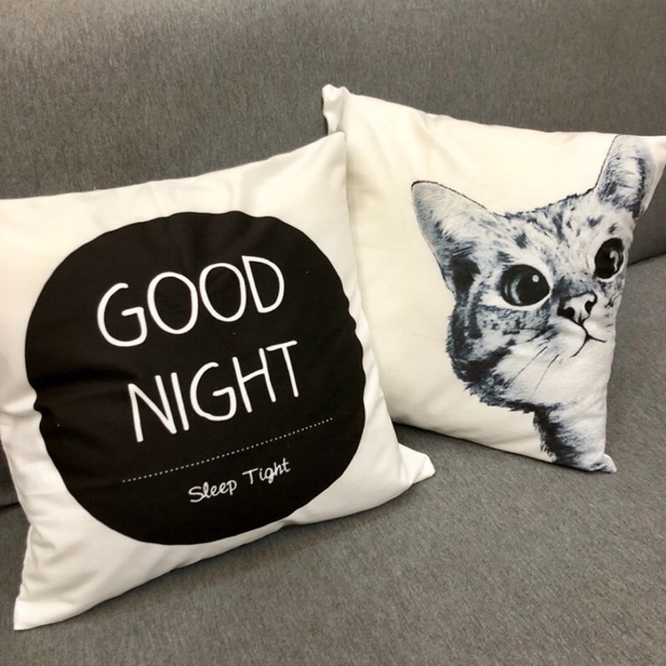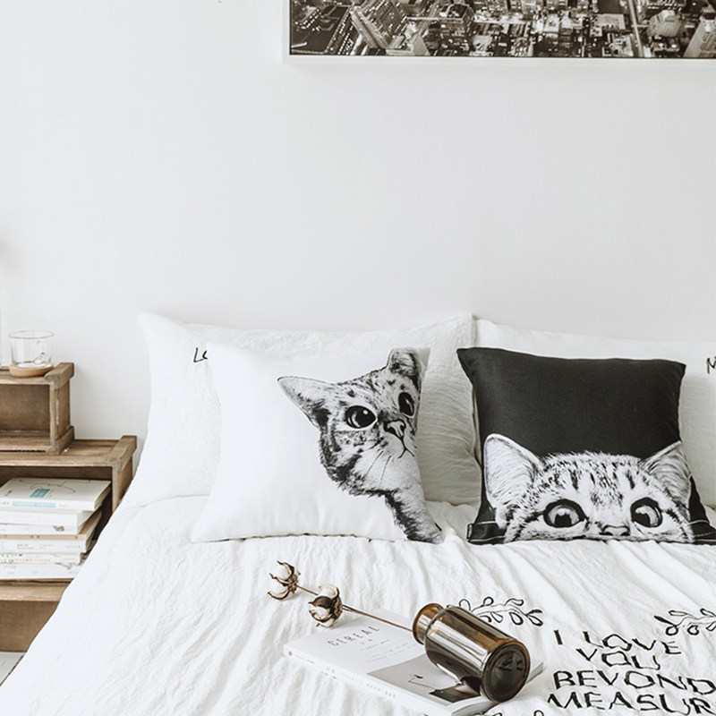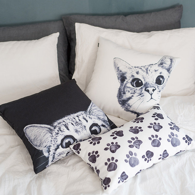 北欧黑白几何动物抱枕套卡通猫咪巴哥雪纳瑞狗狗靠垫汽车沙发靠枕