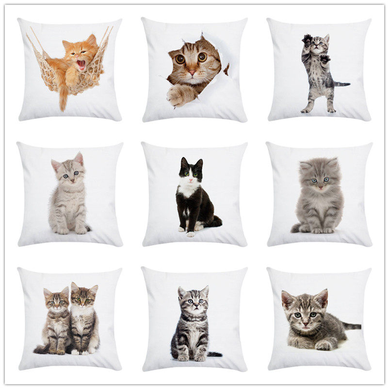 双面可爱猫咪图案短绒抱枕靠垫套 现代客厅靠枕床头靠背腰枕可爱