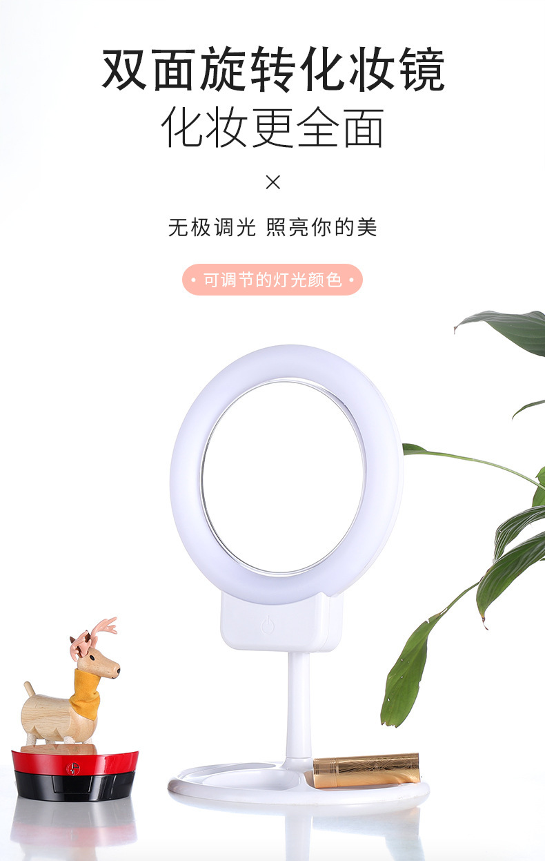 智能折叠双面镜台式led化妆镜收纳美妆镜充电小镜子 带灯补光镜