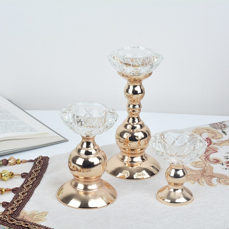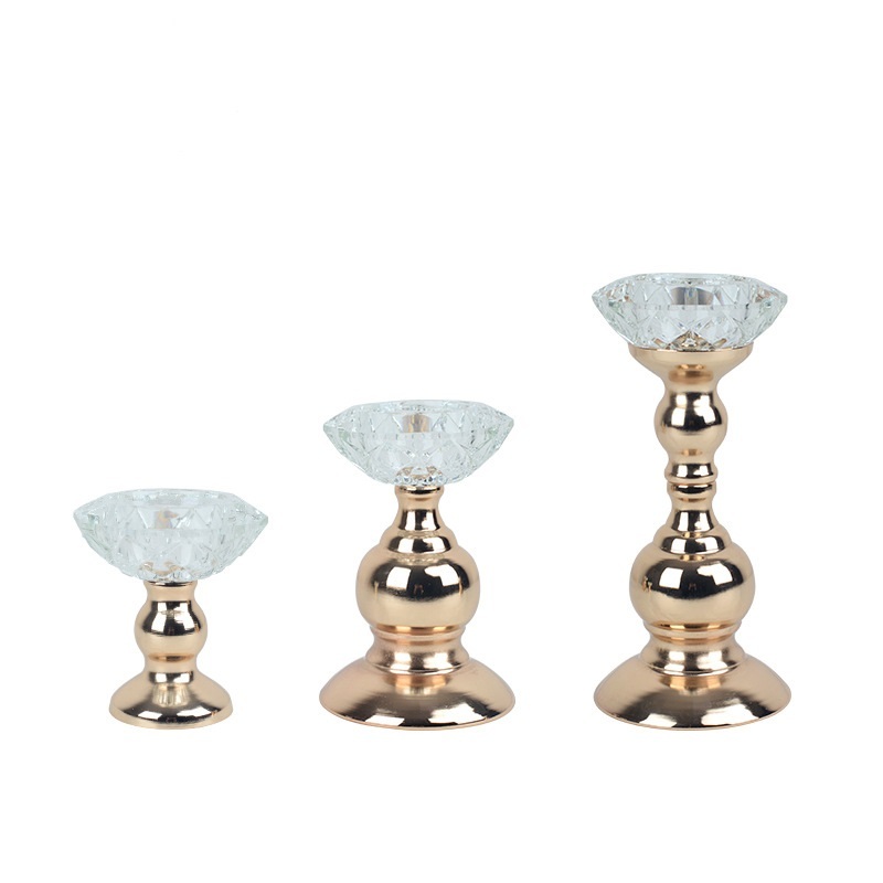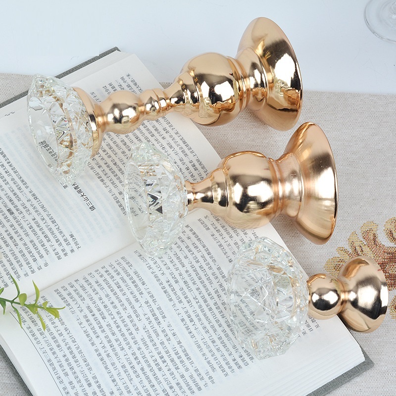 金色蜡烛座欧式金属烛台浪漫家居水晶蜡烛台装饰摆件