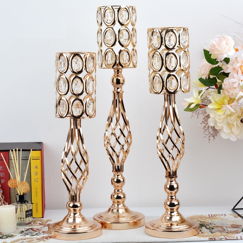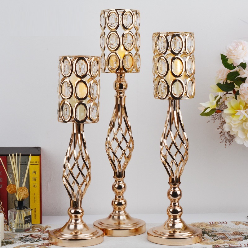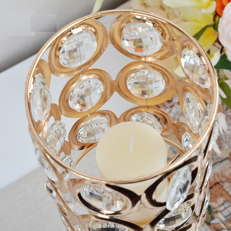 北欧水晶蜡烛台金色铁艺餐桌浪漫氛围装饰蜡烛杯居家摆件