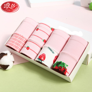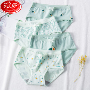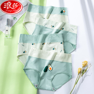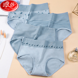 浪莎日系棉印花高腰收腹大码内裤女棉中腰少女内裤女士内衣裤
