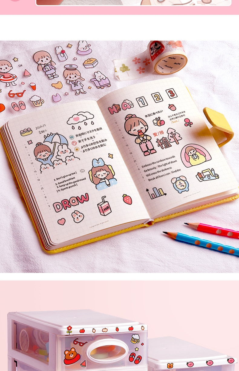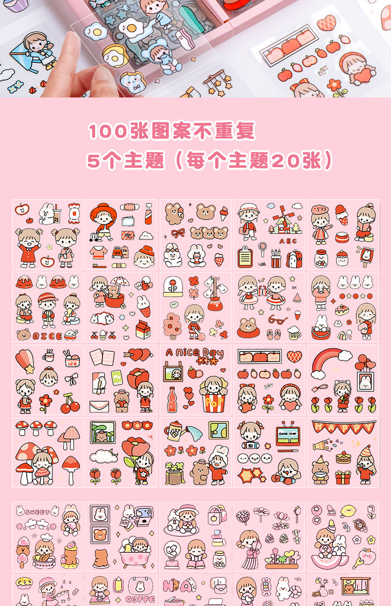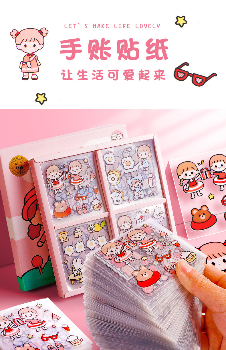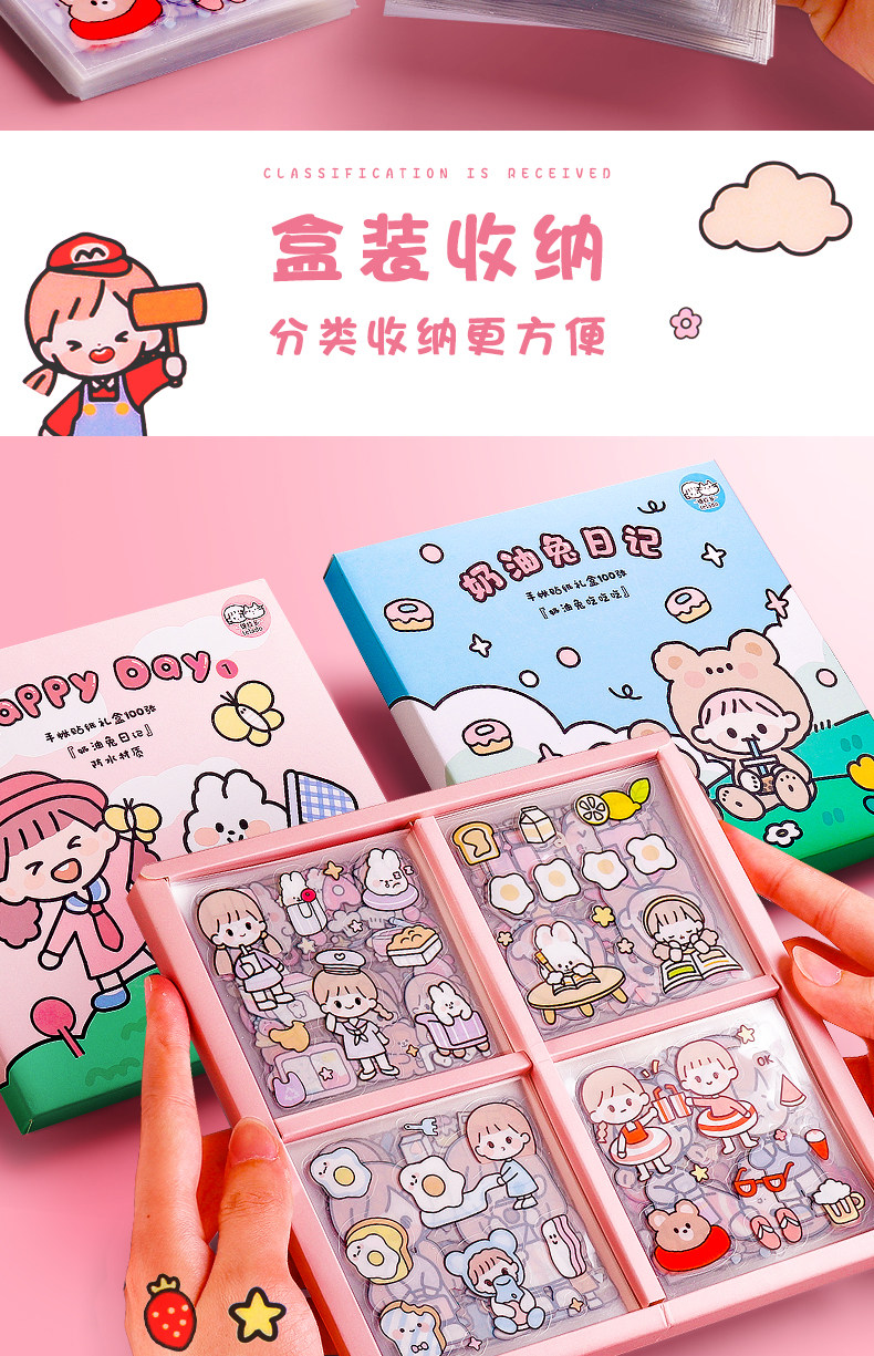 手账本贴纸套装水杯装饰卡通贴画透明无痕防水可爱少女心日系风
