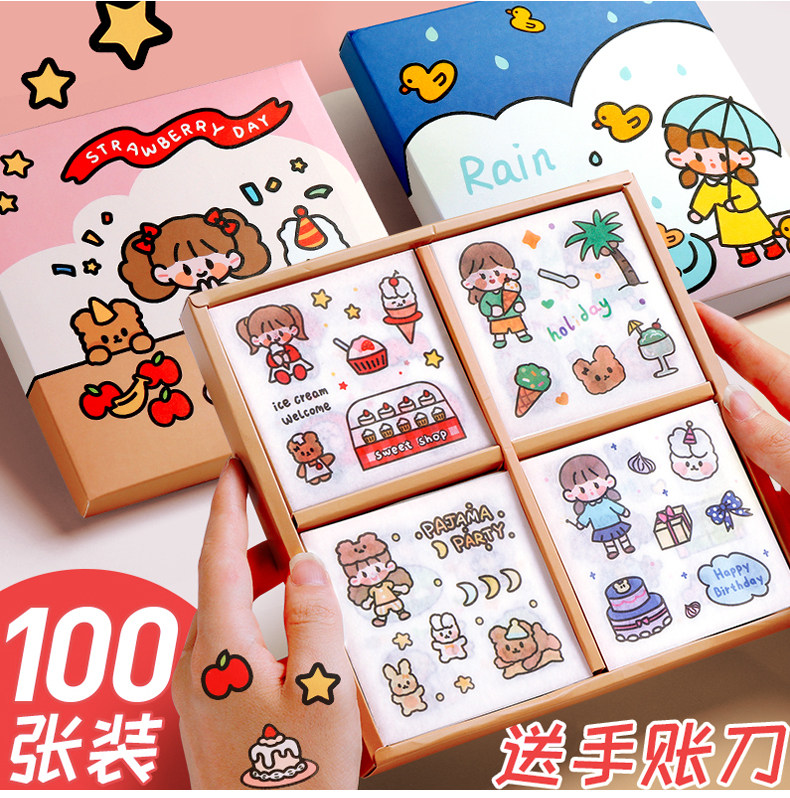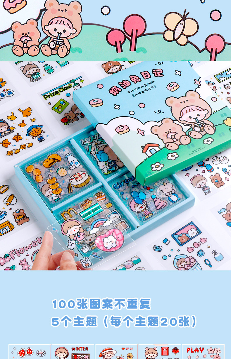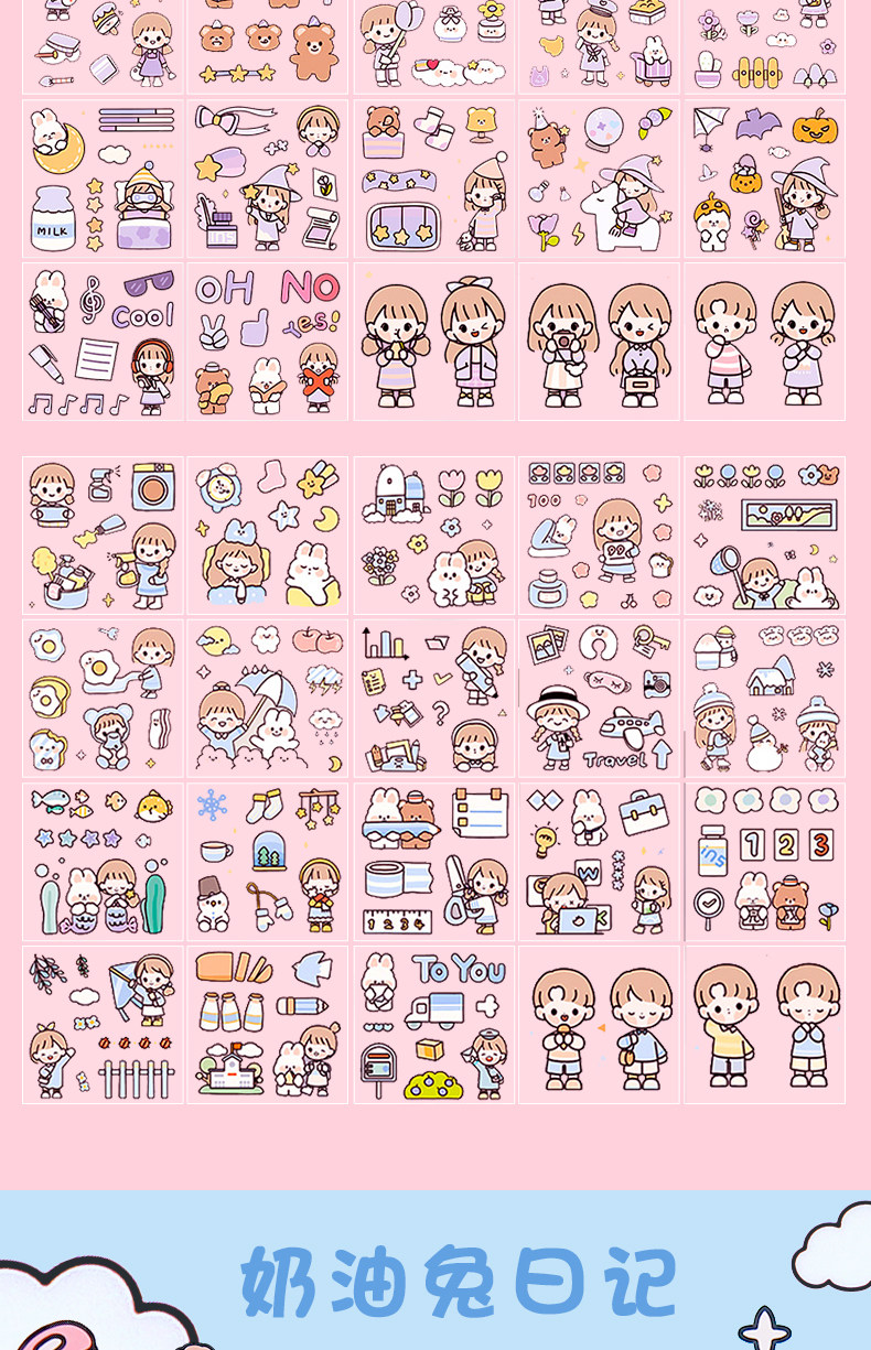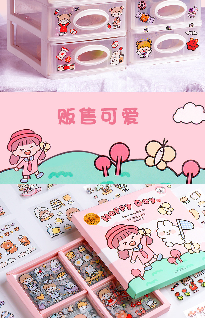 手账本贴纸套装水杯装饰卡通贴画透明无痕防水可爱少女心日系风