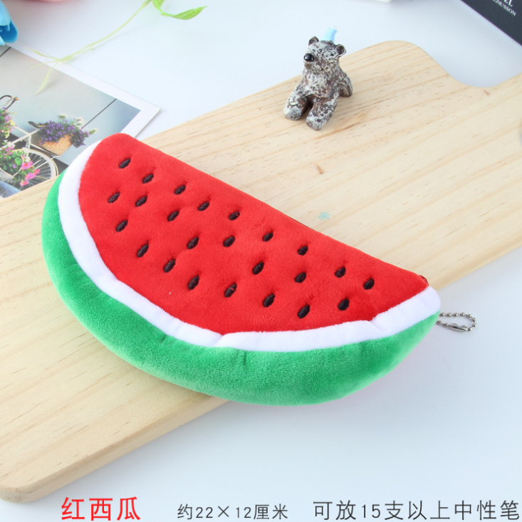 新款创意可爱西瓜水果毛绒笔袋大容量文具收纳袋女士化妆包