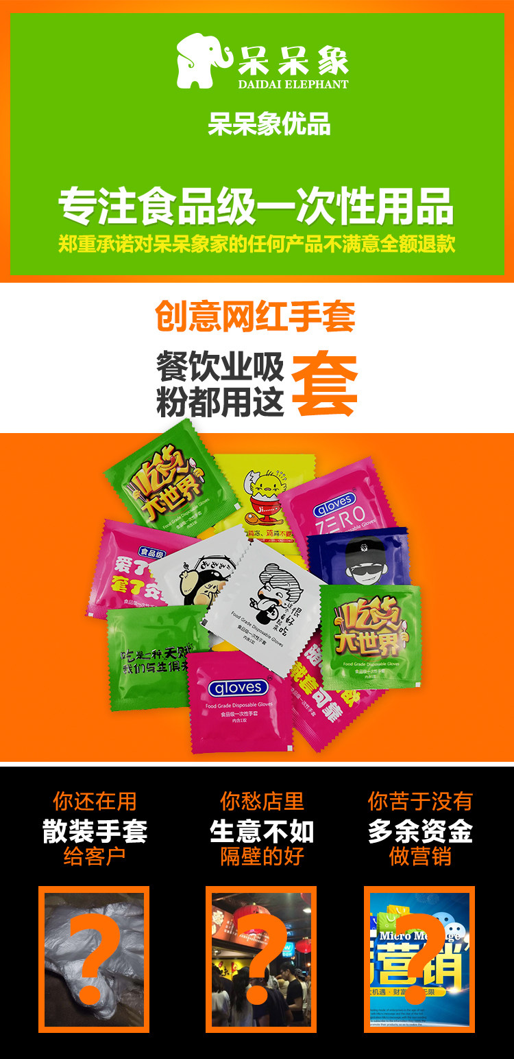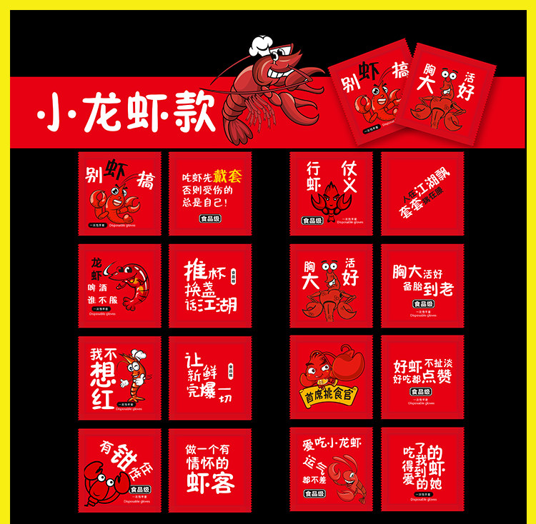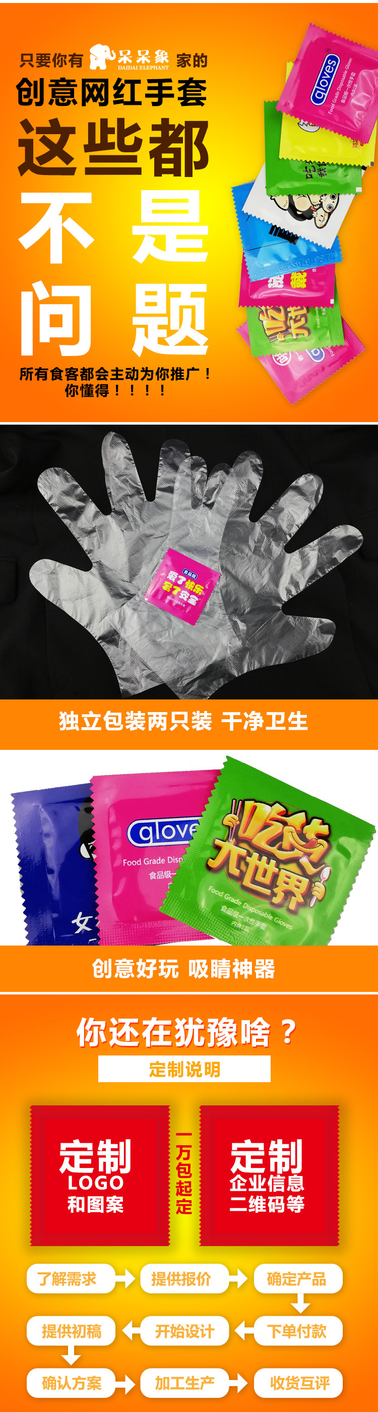 一次性手套个性创意独立包装pe手套小龙虾炸鸡食品餐饮加厚200只