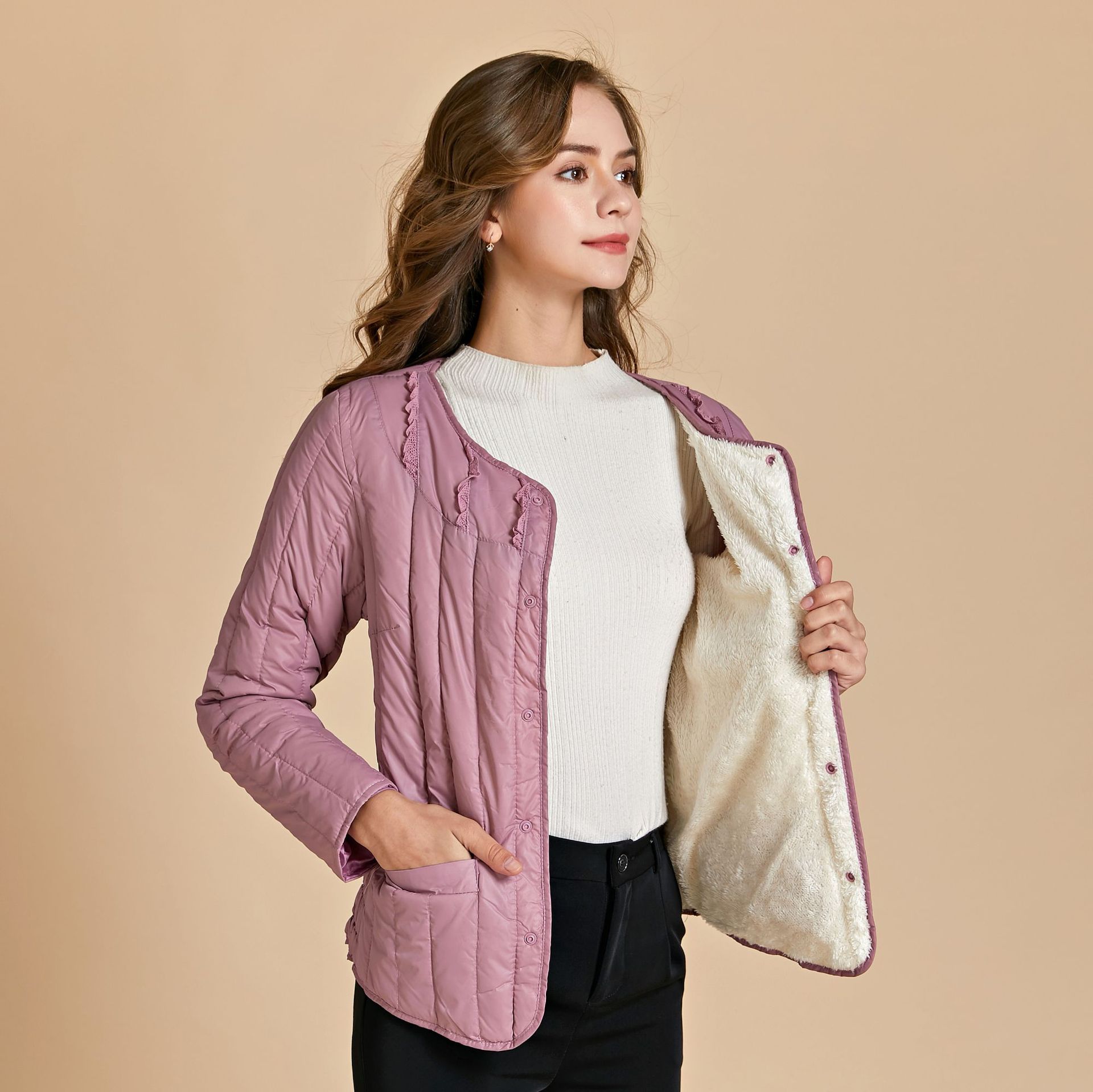 新款批发女士羊羔绒长袖冬季保暖长毛内胆长袖棉衣棉服女款 2023