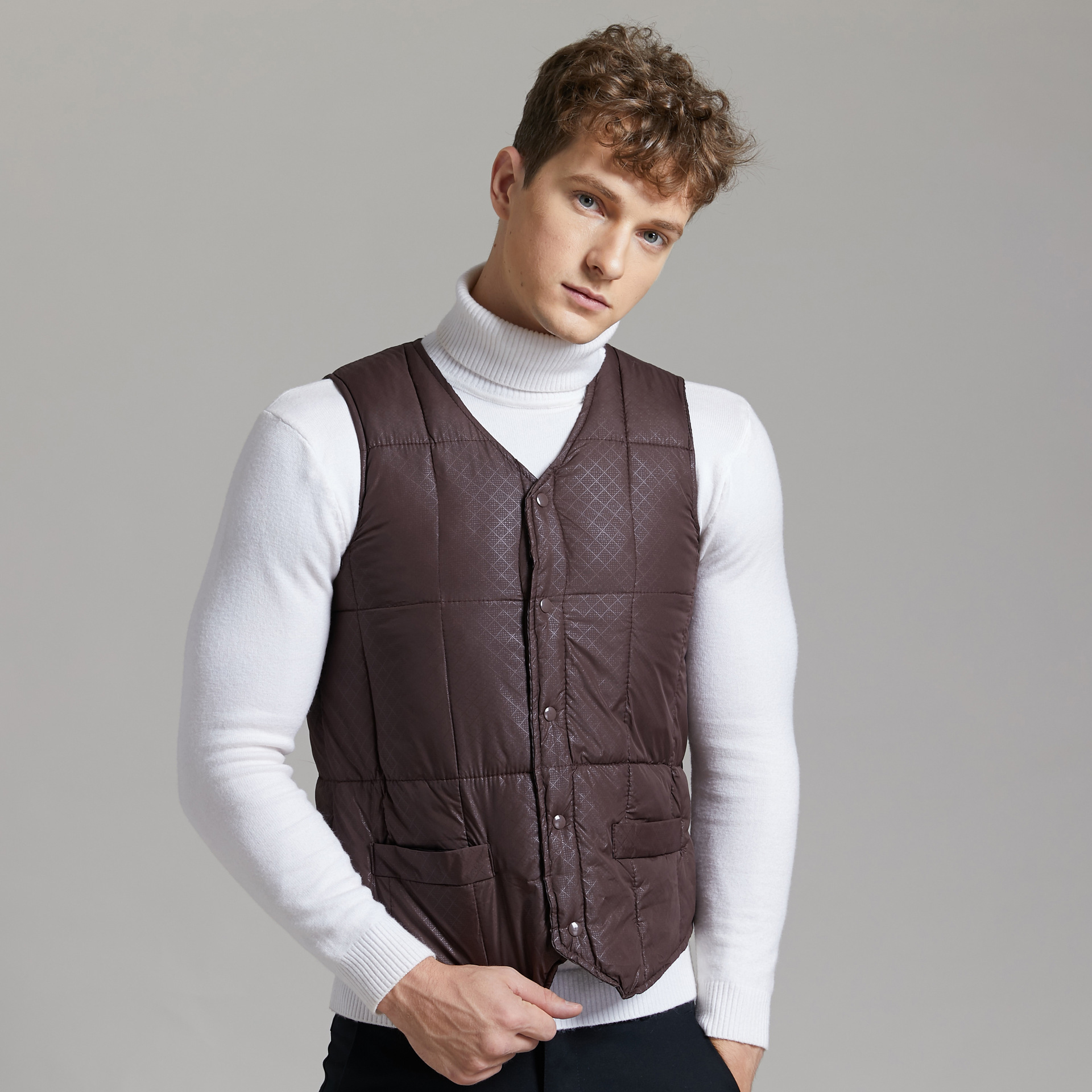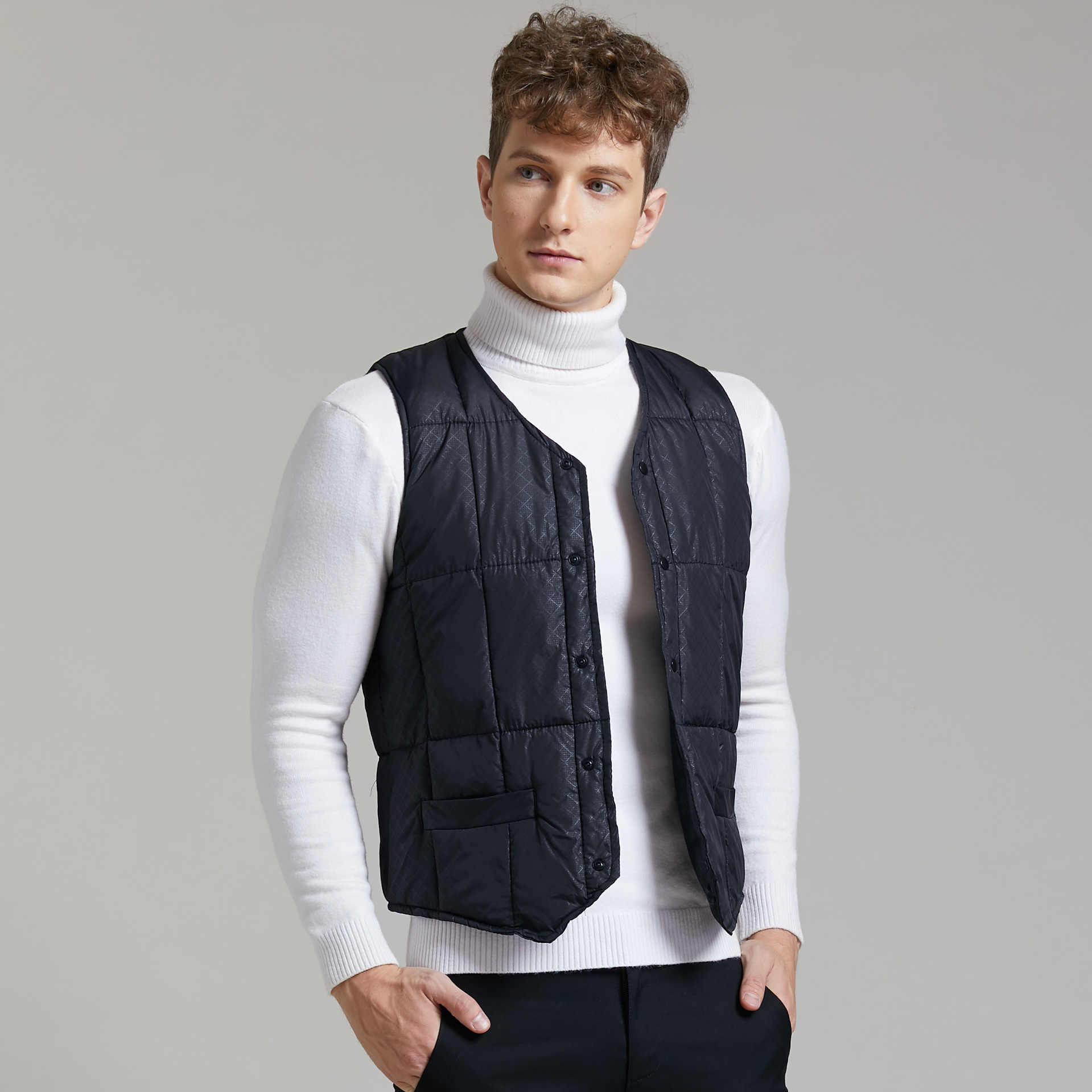 衫宣新款男士冬季短款保暖马甲西装尖角马甲印花秋冬款8730