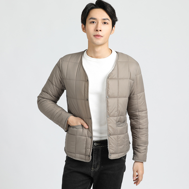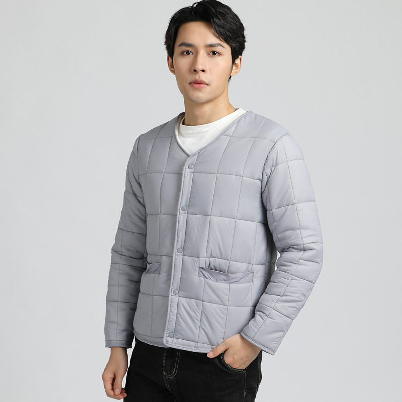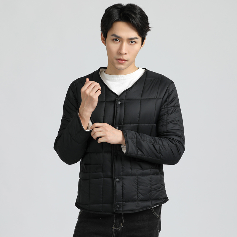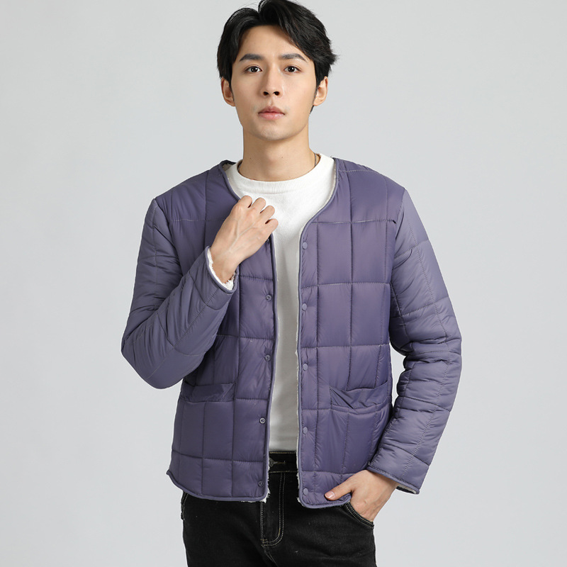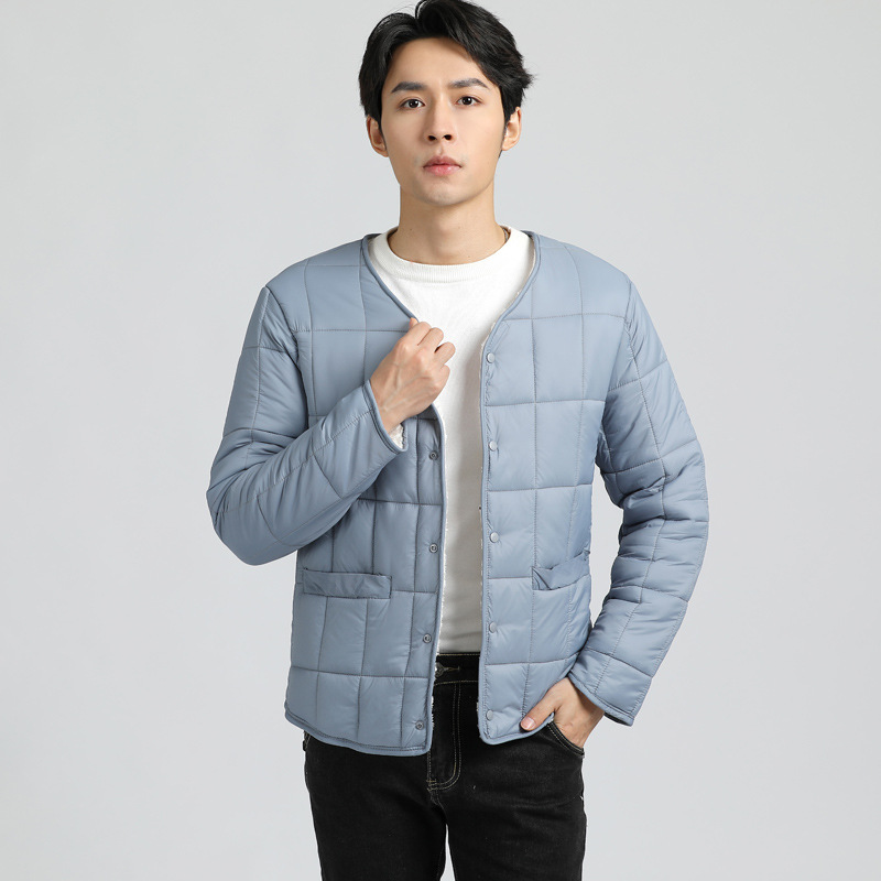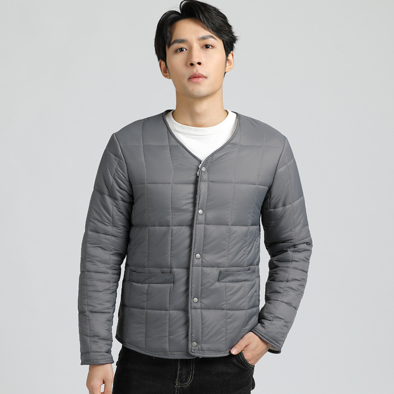 男士冬季新款方格加绒一体绒加厚保暖中青年长袖内胆棉衣棉服8070