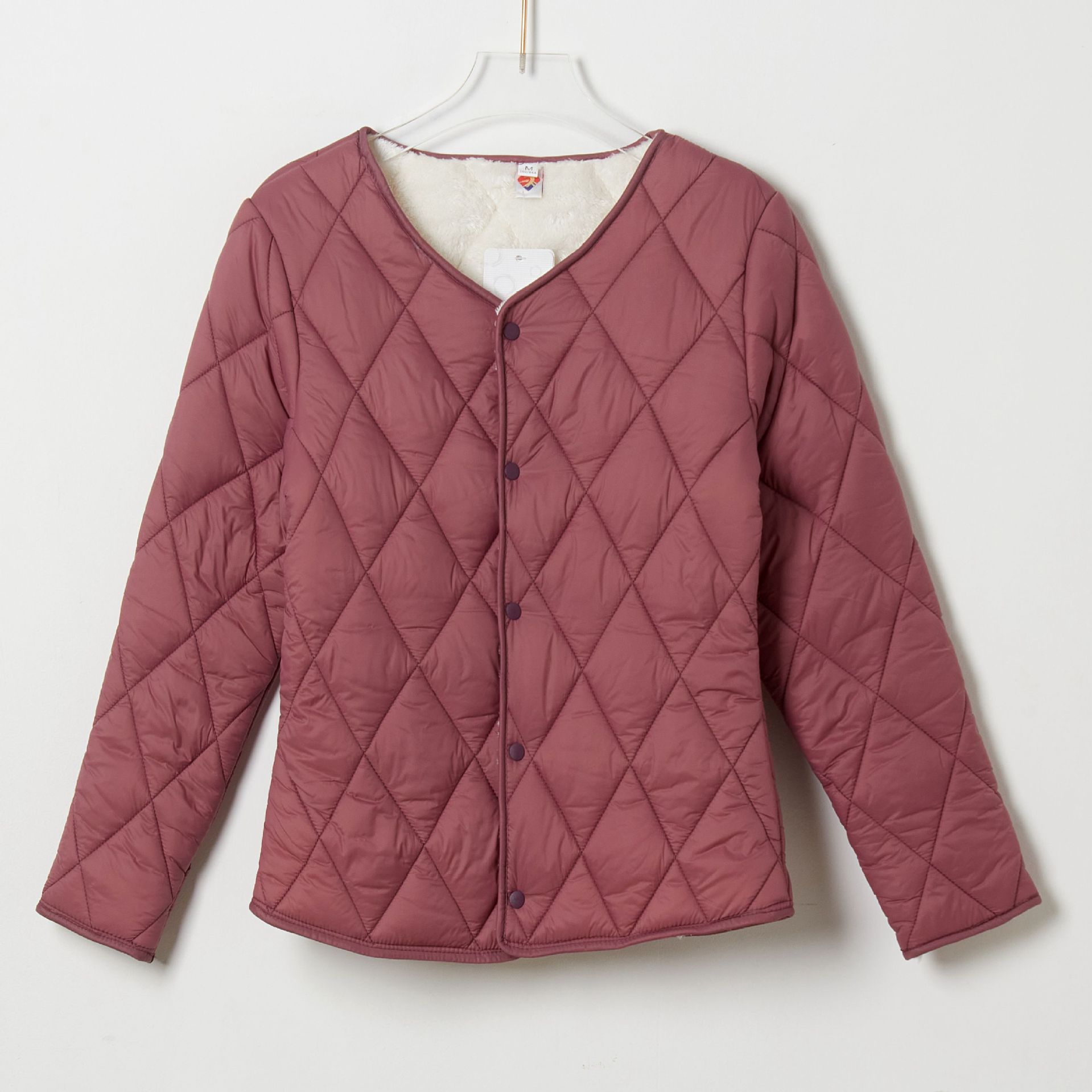 女士加绒加厚一体绒袖子带毛女款长袖棉衣棉服保暖加绒内胆女8230