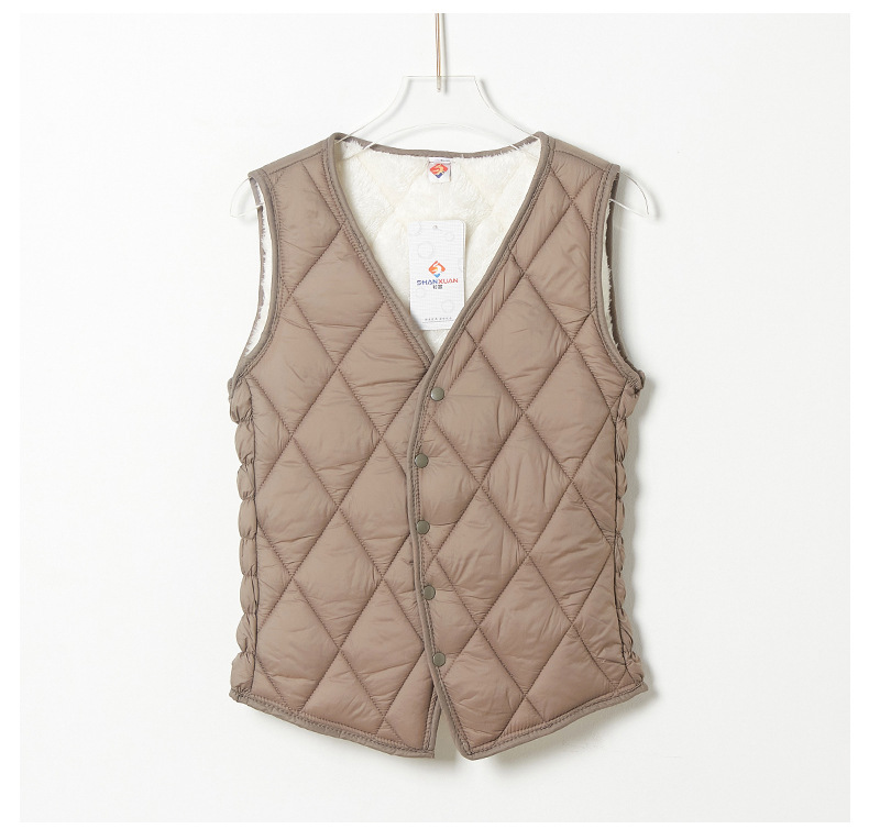 女士时尚修身弧形保暖加绒加厚西装尖角小背心冬季内搭马甲8002