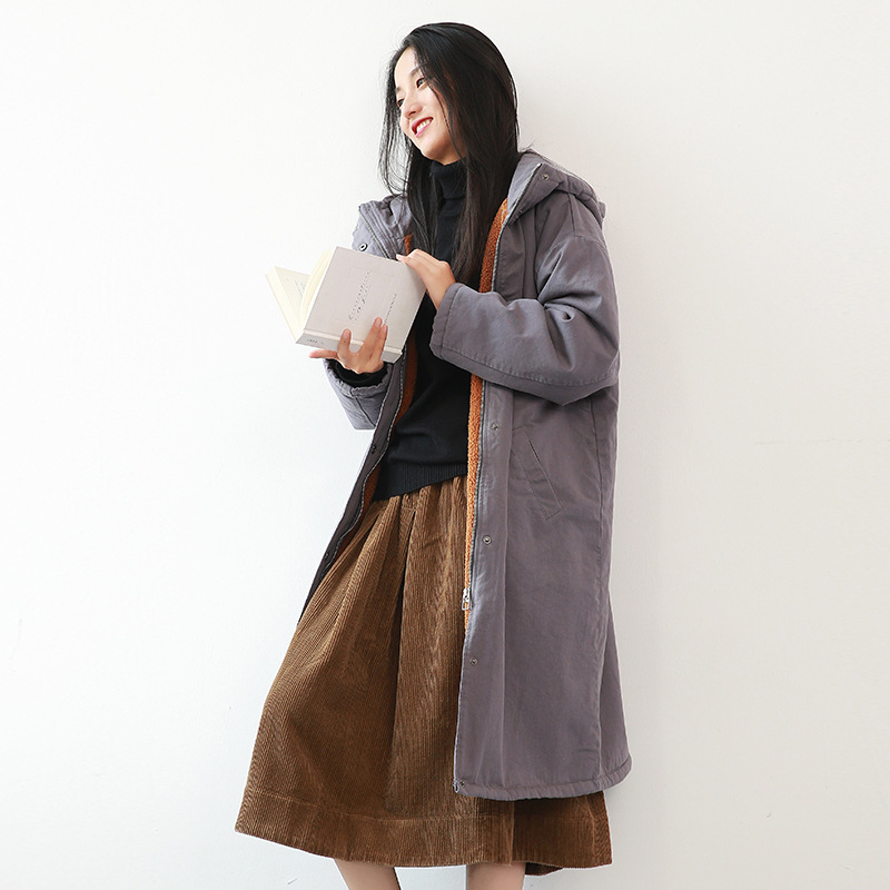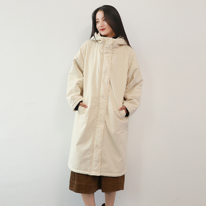 冬装女装长款棉衣女连帽 冬季羊羔绒外套女大码宽松棉服