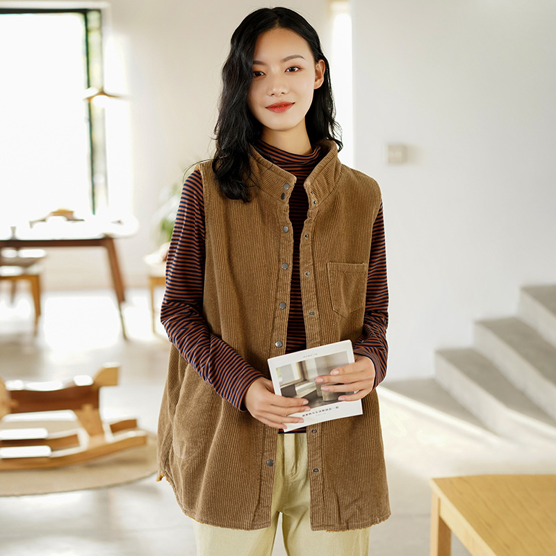 文艺女装羊羔毛马甲女秋冬中长款2020新灯芯绒加厚保暖棉背心外穿