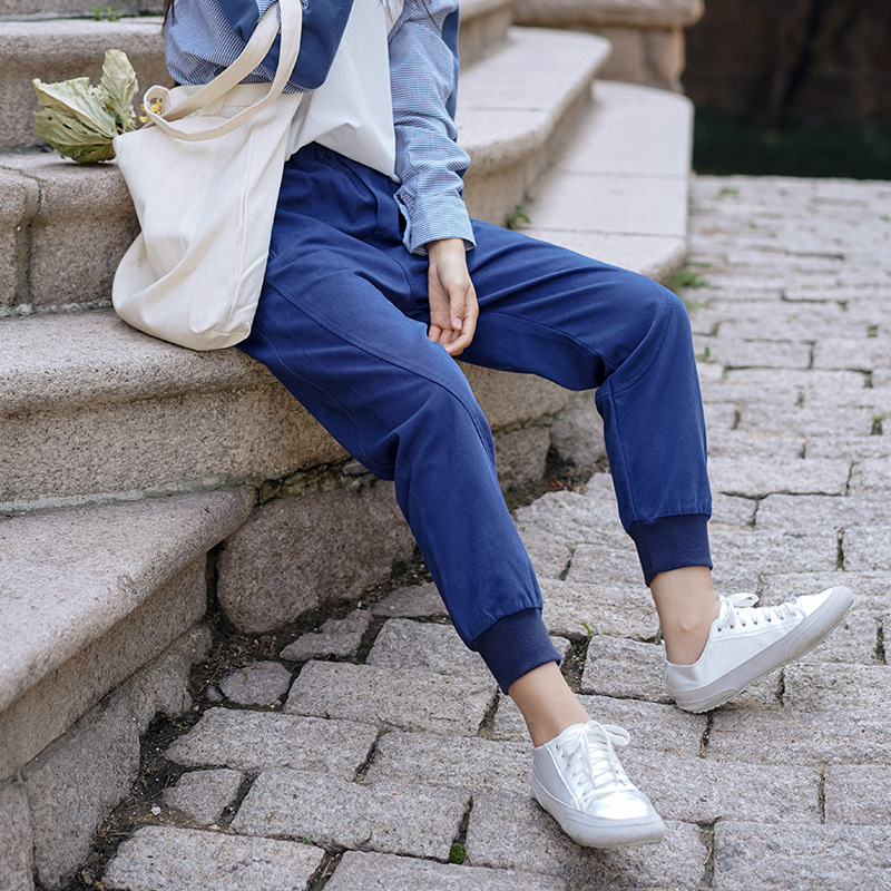 2020秋季新款裤子女纯色高腰休闲九分裤弹力百搭束脚裤女一件代发