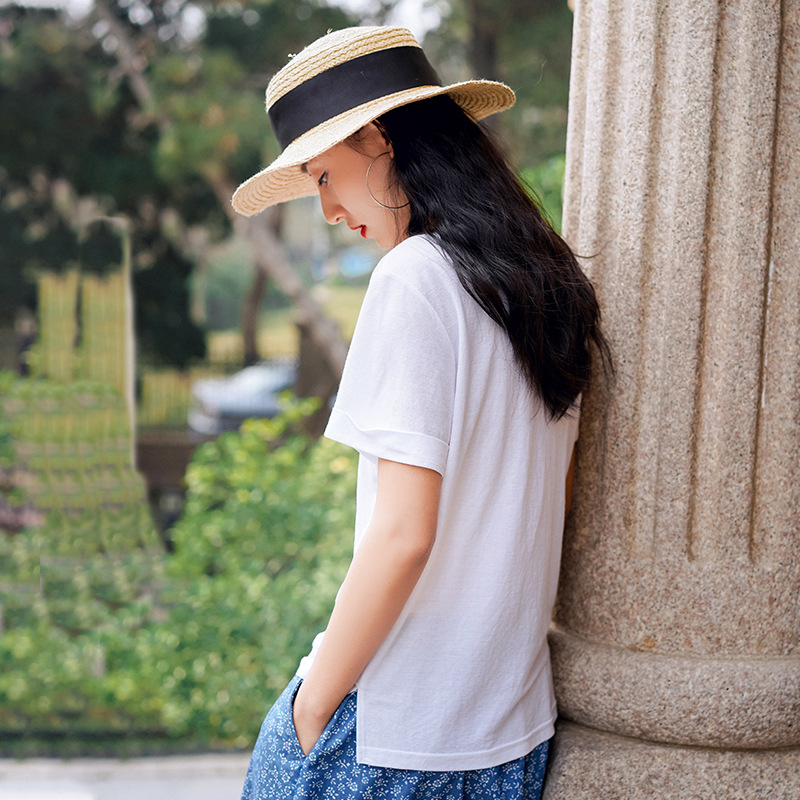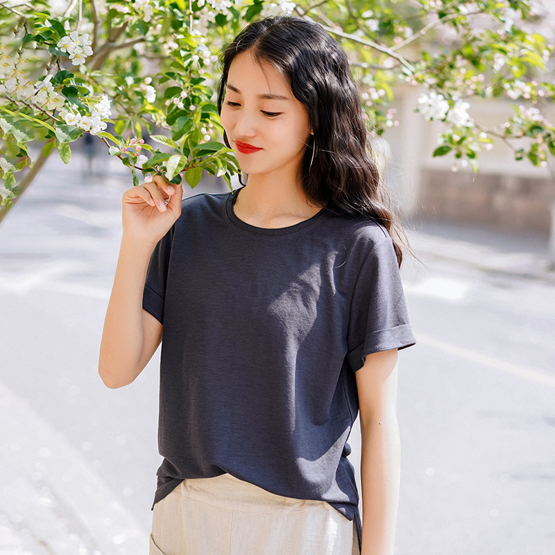 鹿与安笛女装 夏季短袖t恤女纯色宽松百搭弹力t恤打底女上衣批发