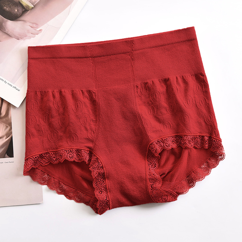 G107高腰提臀女士三角内裤性感蕾丝花边收腹提花美体打底内裤批发