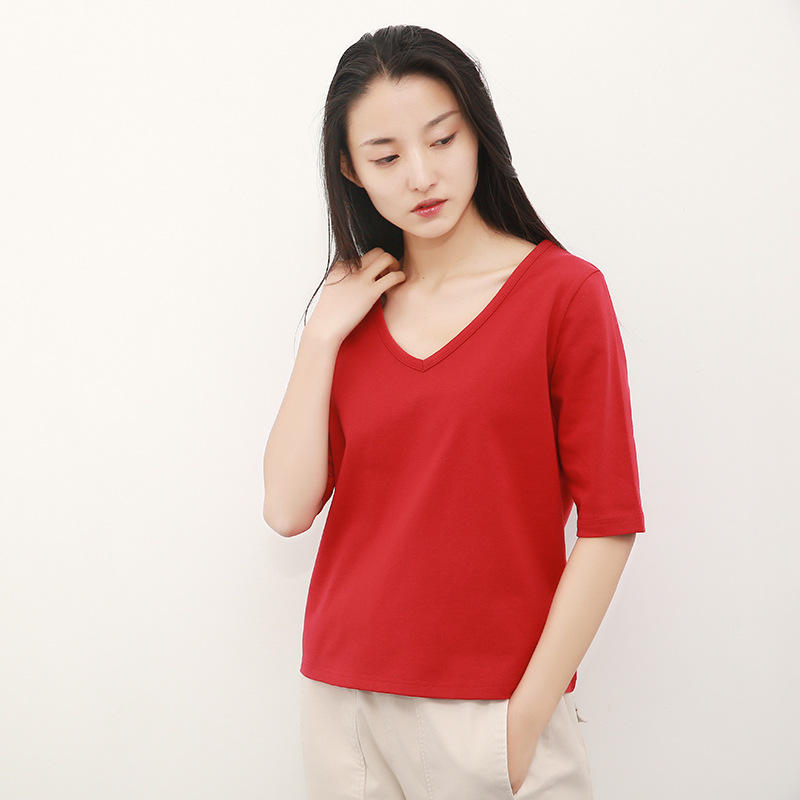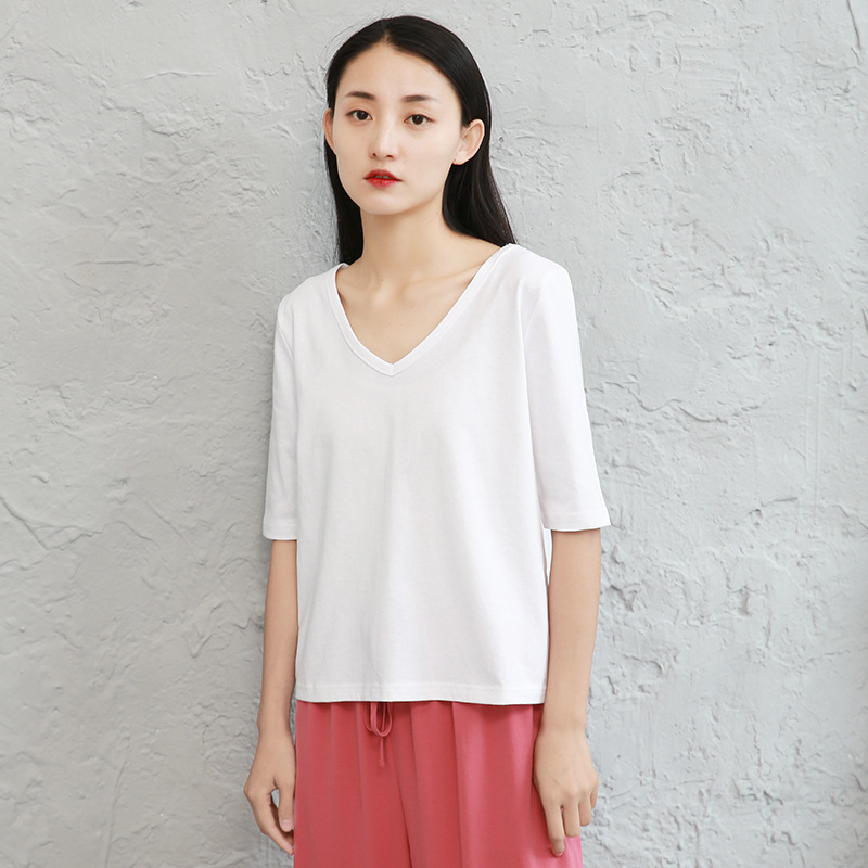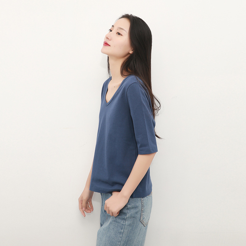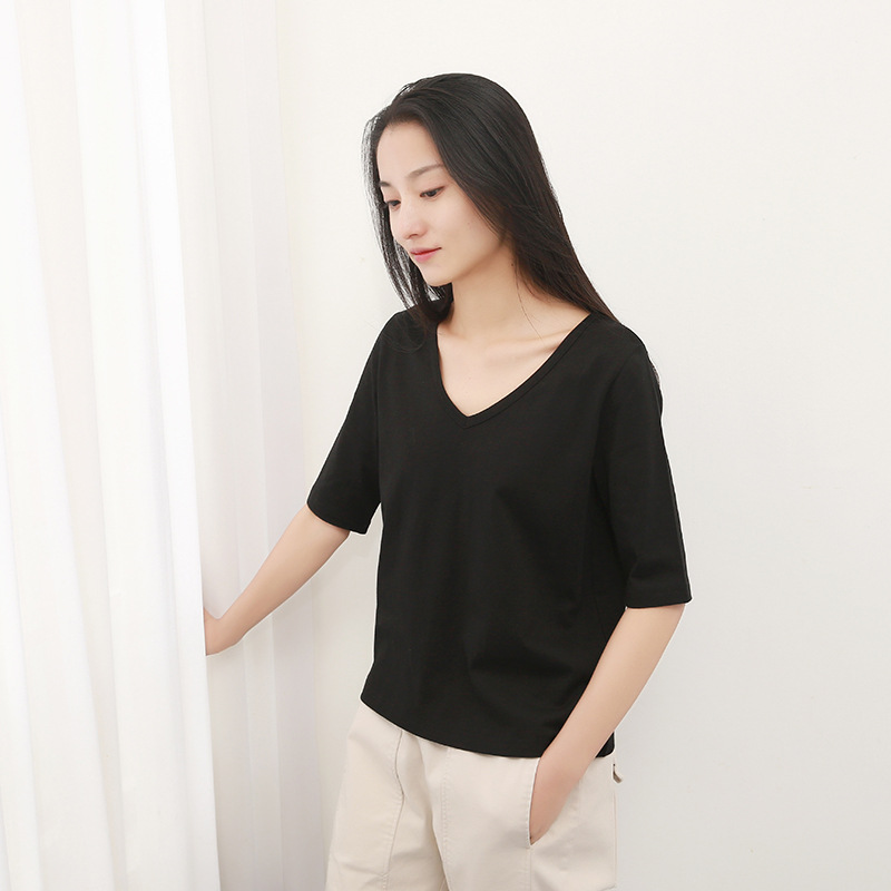 新款短袖T恤女2019夏韩版修身V领 体恤女装半袖打底套头衫批发
