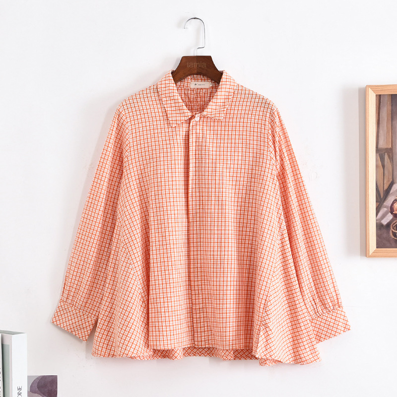 秋装格子衬衫女长袖宽松设计感衬衣a字版小清新上衣批发