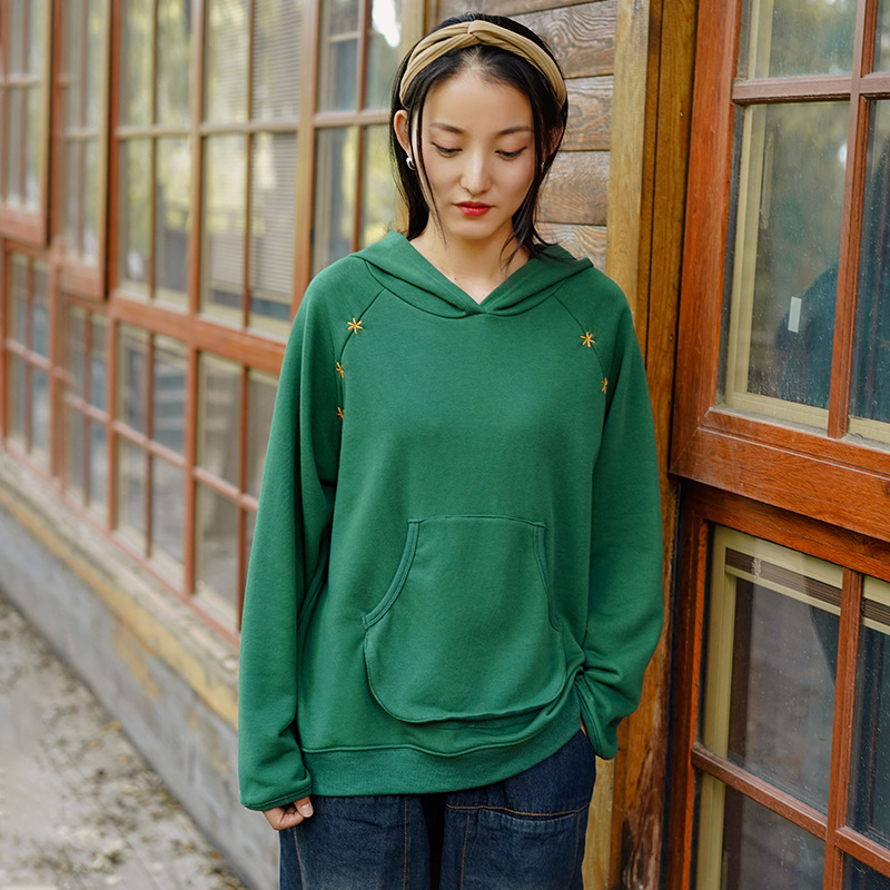 鹿与安笛女装卫衣女秋冬日系宽松刺绣设计感连帽女卫衣