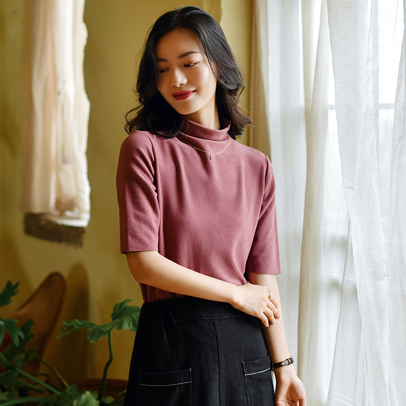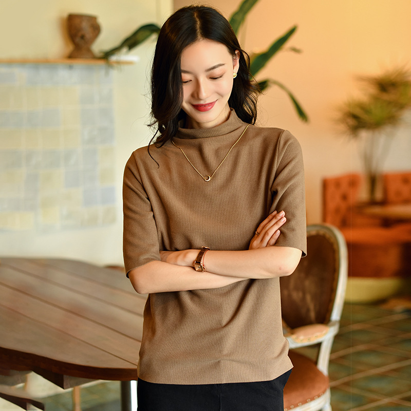 厂家定做女装新款半高领德绒打底衫女保暖内搭半袖内搭t恤批发