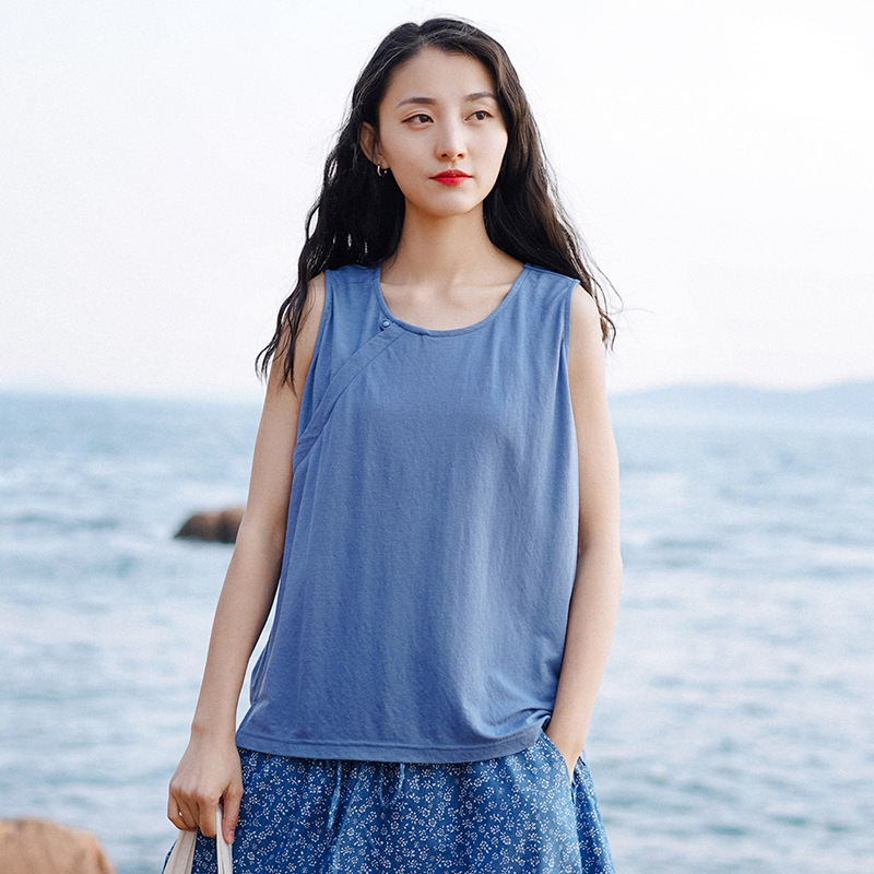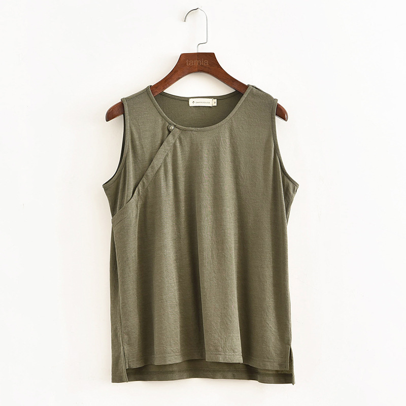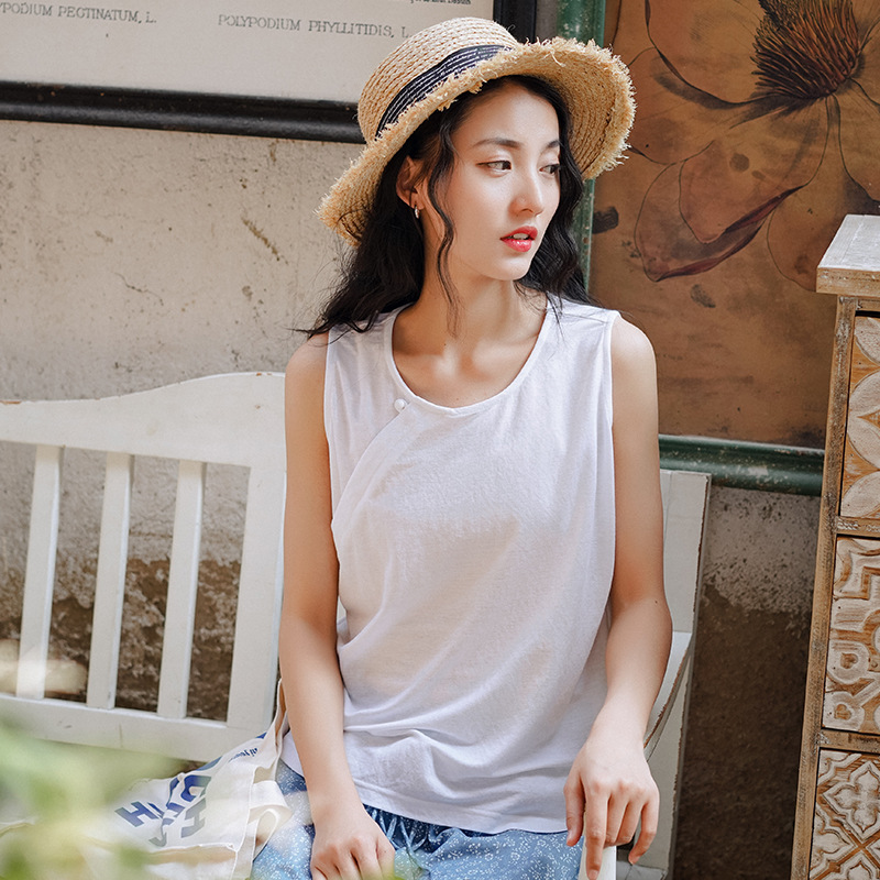 棉麻女装背心女夏外穿纯色圆领宽松无袖上衣crop tops