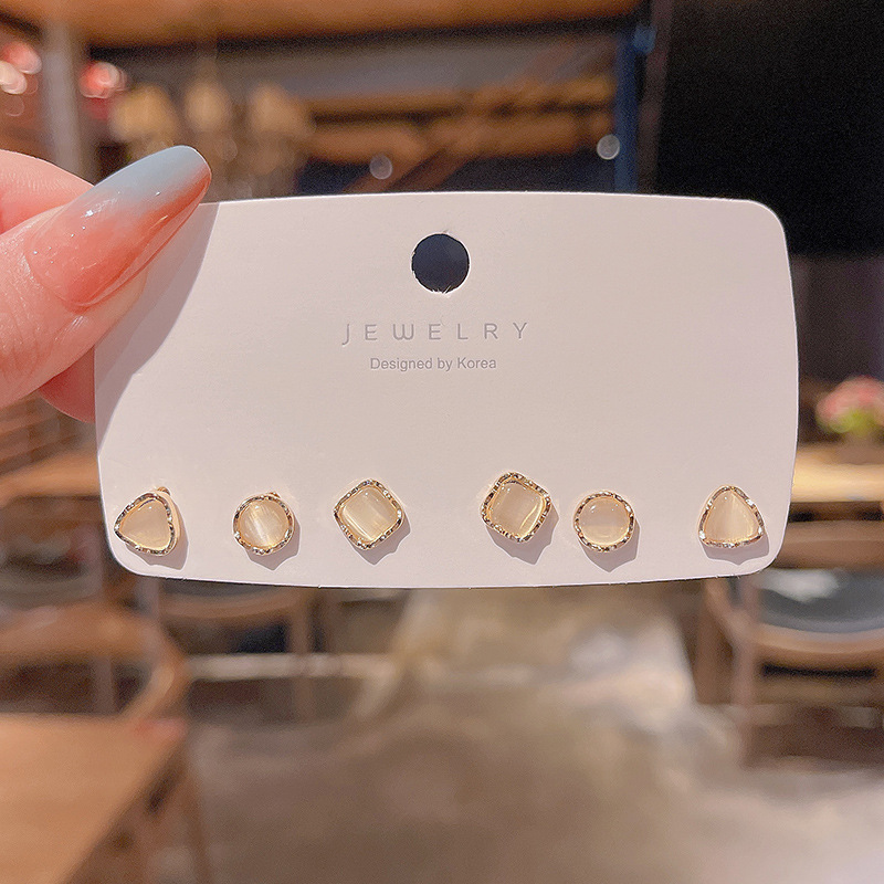 饰品S925银针韩版简约猫眼石套装养耳小耳钉超闪设计感耳环女