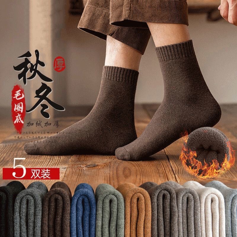 毛圈袜子 秋冬冬季透气防臭加厚纯色中筒加绒长筒保暖运动袜子