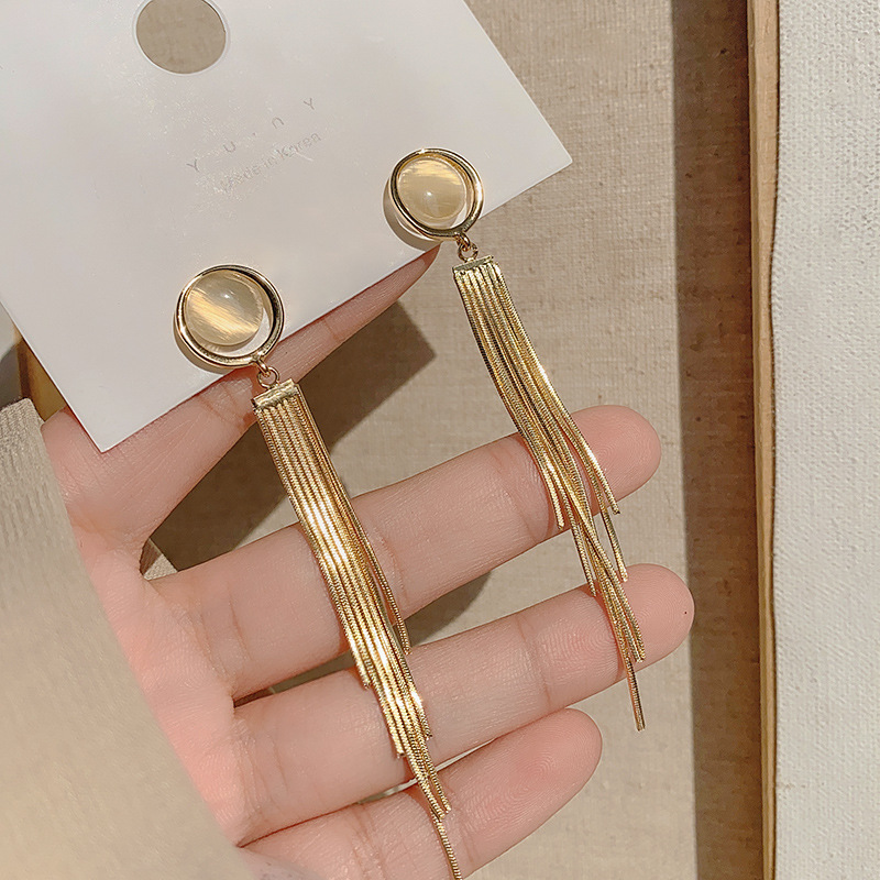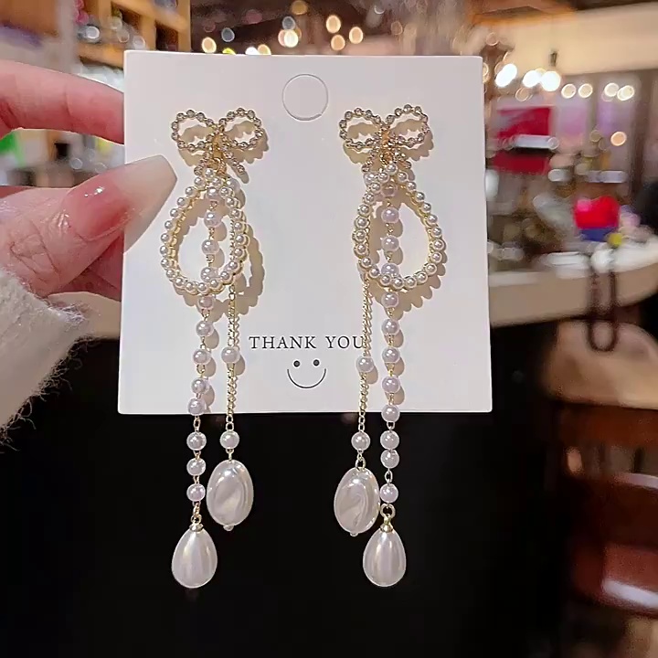 饰品925银针耳环气质女神范耳钉珍珠耳坠长款流苏地摊耳饰复古