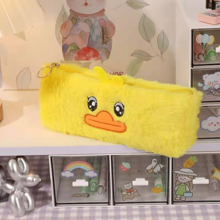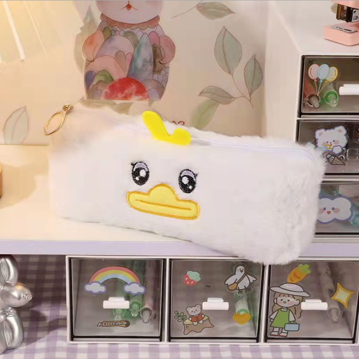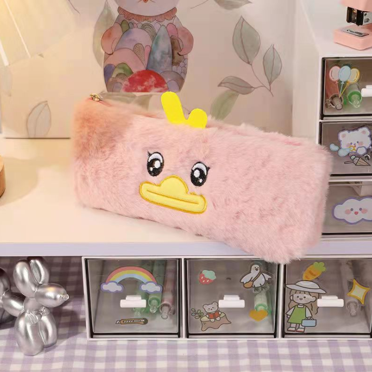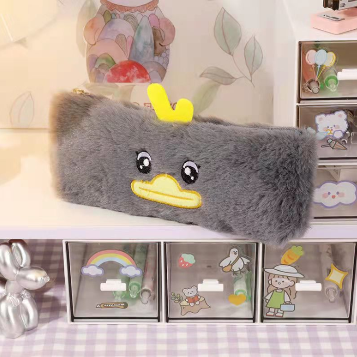 新款韩版可爱毛绒鸭子笔袋简约学生文具收纳袋文具盒笔袋