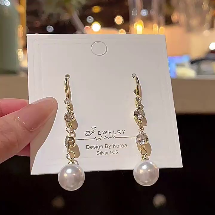 饰品925银针耳夹猫眼石耳环女韩国几何个性珍珠耳钉简约小巧耳饰
