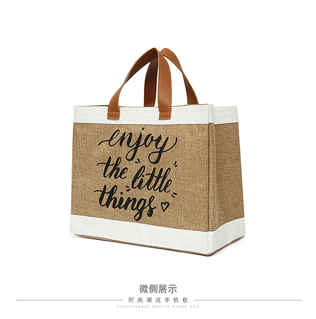 新款拼接旅行草编大容量休闲女字母购物袋欧美复古文艺手提包