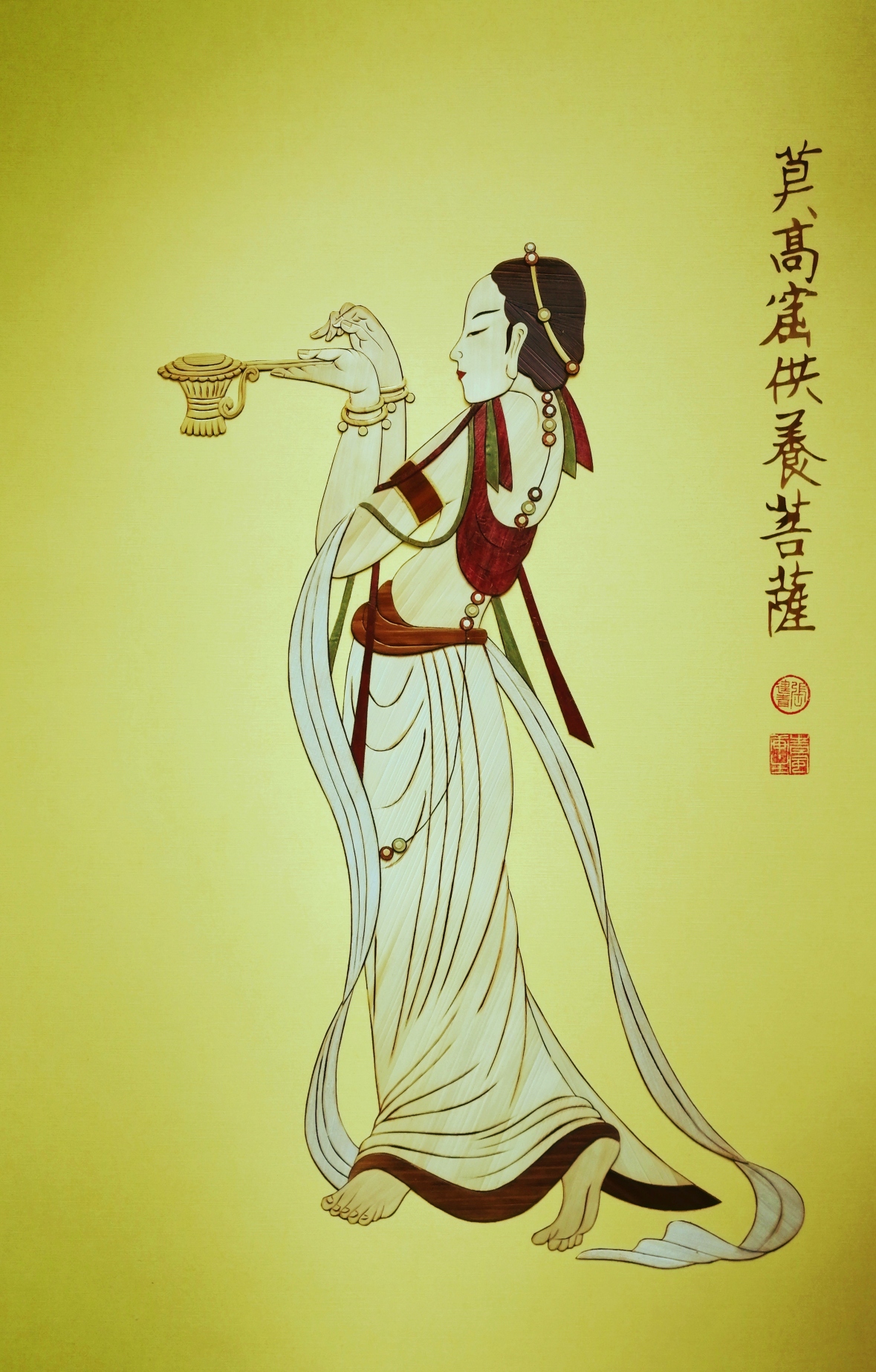 古有典故“一叶芦苇渡达摩,万卷经书惠众生。”芦苇——开芦花,展五叶,天生佛性。 芦苇画是中国传统民间艺术精品中的一朵奇葩,据传,它始于唐,兴于宋,流行于明清,后因种种原因,一度濒临失传。芦苇画传承人张建青在继承老一辈民间艺术家优秀文化传统的基础上,大胆创新,运用现代特制工具对其制作工艺进行改进,独创芦苇画透雕衬绒纸技术,创作出了既有传统艺术美感、又有现代生活气息芦苇画。更充分地利用天然芦苇的自然光泽和材质把天地风雨、花鸟鱼虫、人物风景、花卉动物等表现地栩栩如生,巧夺天工。在创作上,她大胆吸收了国画、版画、剪纸、油画、烙画等等多种艺术表现形式,呈现天趣合一,妙到好处的意境。在画面风格上,以民间传统工艺为本,努力追求时代特色;在色彩运用上,以芦苇自然色为主调,点缀少许明快色彩而富于变化,配以红与黑为底色,使其浑然一体,醒目大气。制作精美,色泽明快,神态逼真,给人一种返璞归真的艺术享受。 “从取材到变成惟妙惟肖的芦苇画,经过割、晒、晾、刮、碾、烫、润等前期的处理,而后烫平、抛光、拼接、粘合、着色等30多道工序精心编制而成,是纯手工制作,而且稍有不慎就会前功尽弃。做这样的工作如果没有耐心,是根本无法完成的。”张建青认真的说到。通过不断地摸索,她创作的芦苇画以逼真的形象逐渐引起了人们的关注,越来越多的人慕名前来参观他的芦苇画。 留住技艺,留住的不是一幅图画,而是技艺在传承过程中所承载的历史和文化;留住的是一编一烫所赋予的生命力;留住的是匠人对传统文化的传承和发扬。留住技艺,留住的不是一幅图画,而是技艺在传承过程中所承载的历史和文化;留住的是一编一烫所赋予的生命力;留住的是匠人对传统文化的传承和发扬。