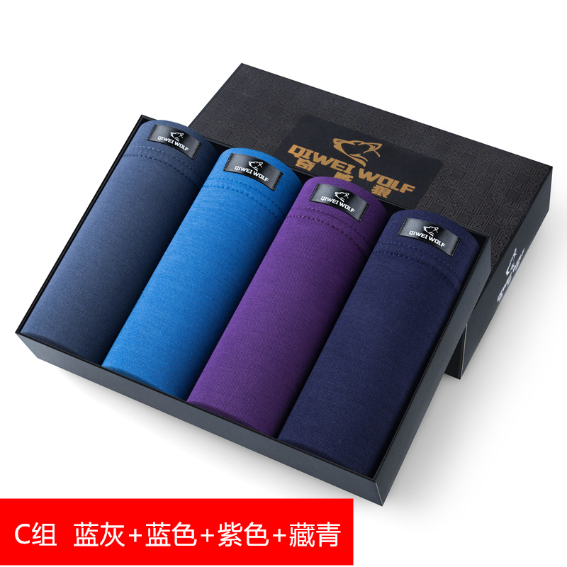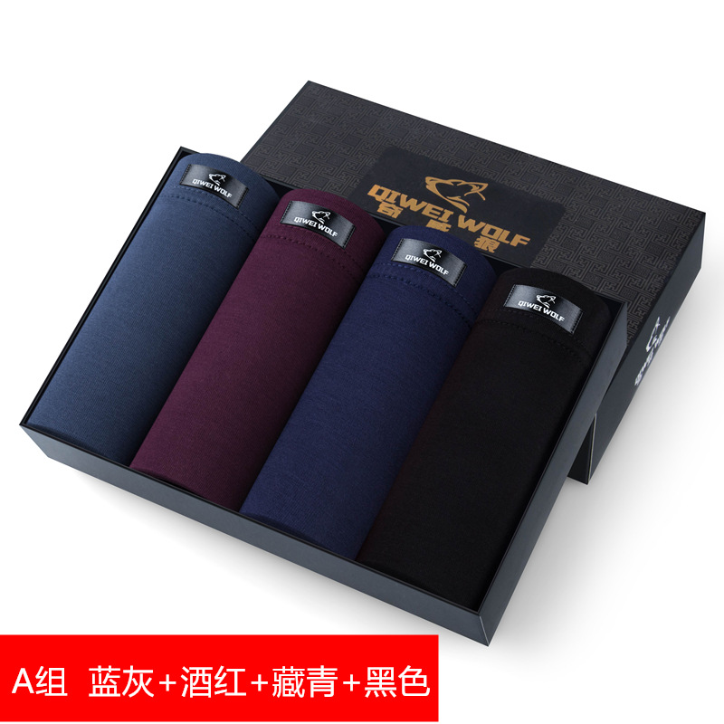 四条盒装竹纤维男士内裤 中腰青年U凸男式四角平角内裤一件代发