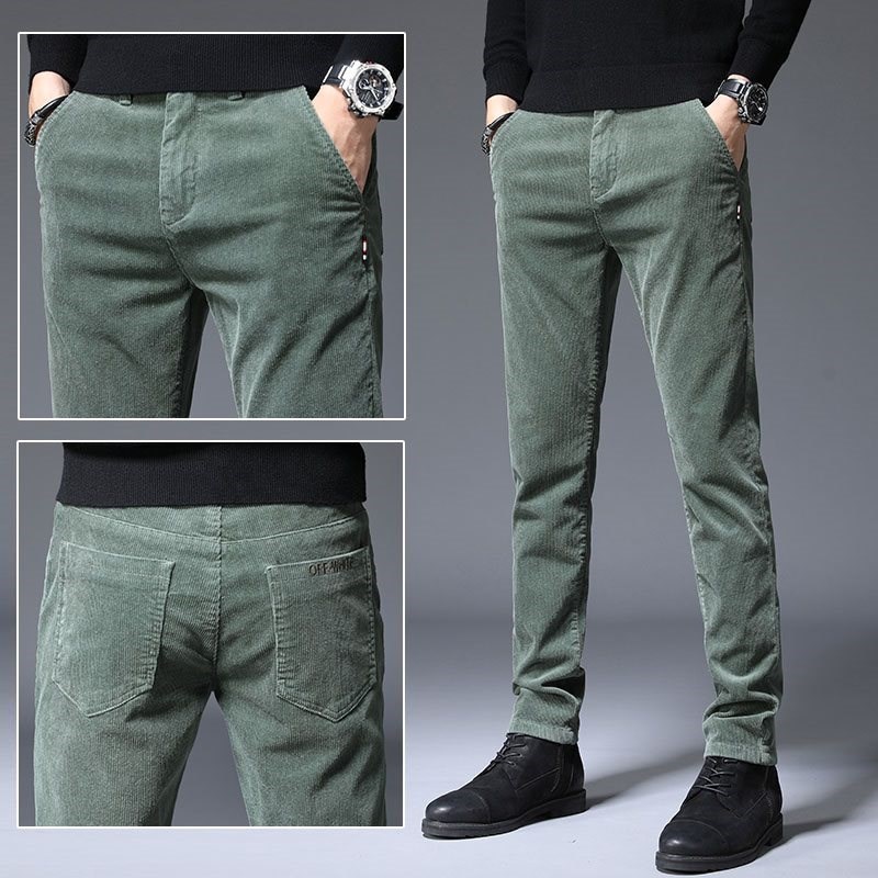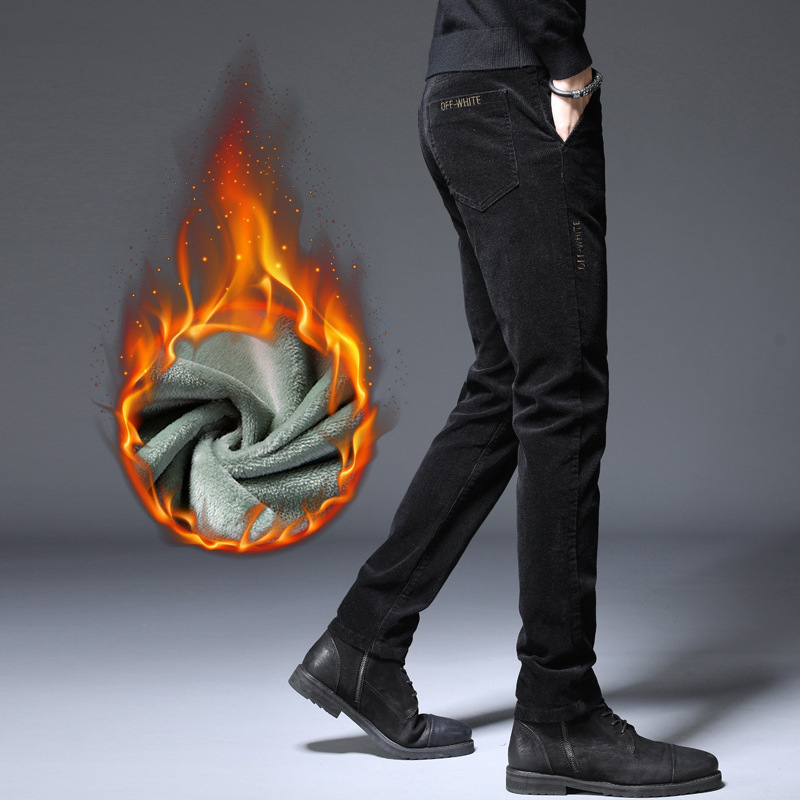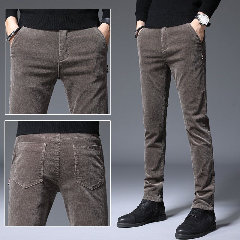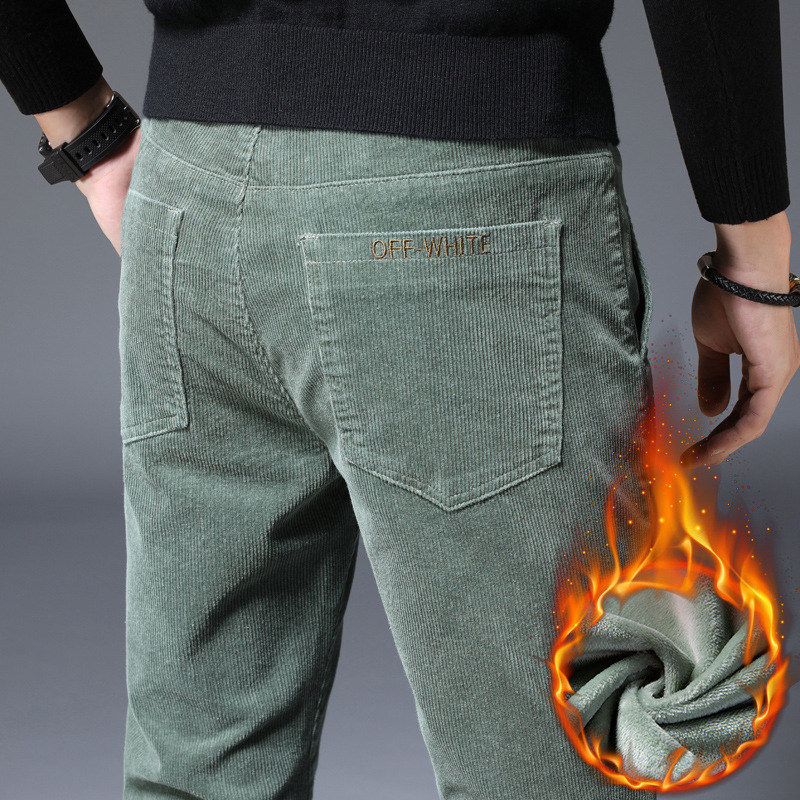 裤子男秋冬加绒加厚修身灯芯绒休闲裤男韩版潮流宽松秋季条绒男裤
