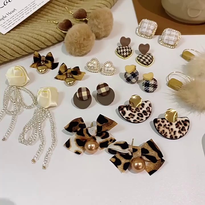 饰品925银针耳夹东大门ins风小众豹纹毛球秋冬耳环时尚耳钉耳饰