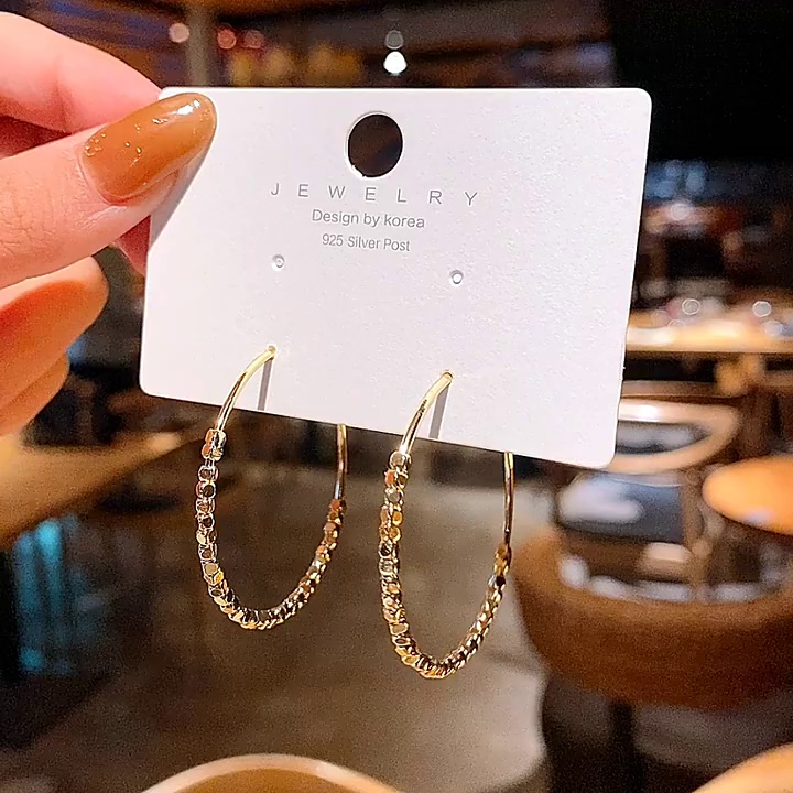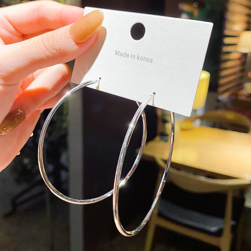 饰品耳夹大圆圈耳坠女S925银针复古个性耳环百搭耳饰一件代发