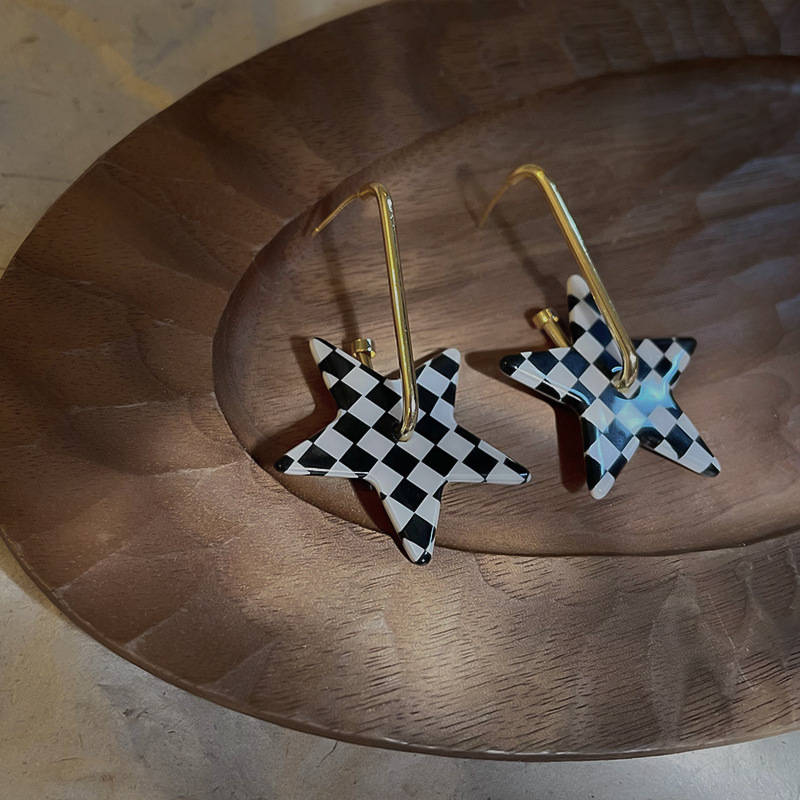饰品925银针耳夹耳环千鸟格黑白棋盘格地摊耳钉复古耳饰一件代发