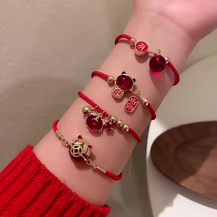 饰品本命年生肖虎红绳手链女编织红手绳闺蜜情侣配件一件代发手饰