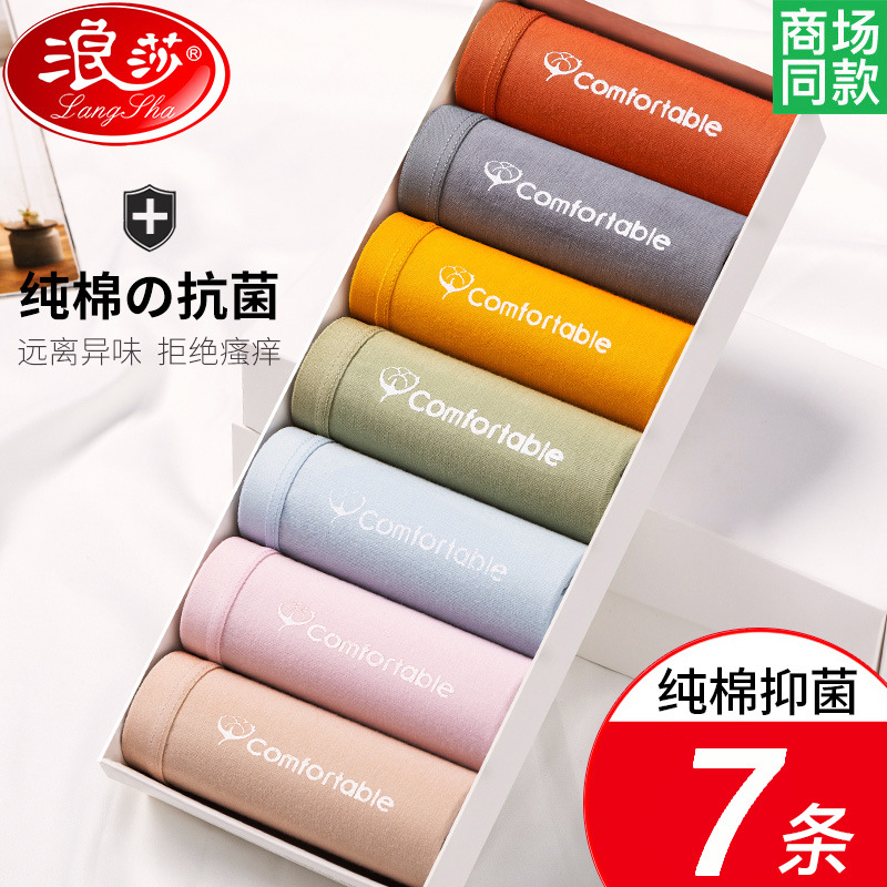 浪莎纯棉女士内裤女全棉裆中腰少女印花学生日系无痕三角短裤